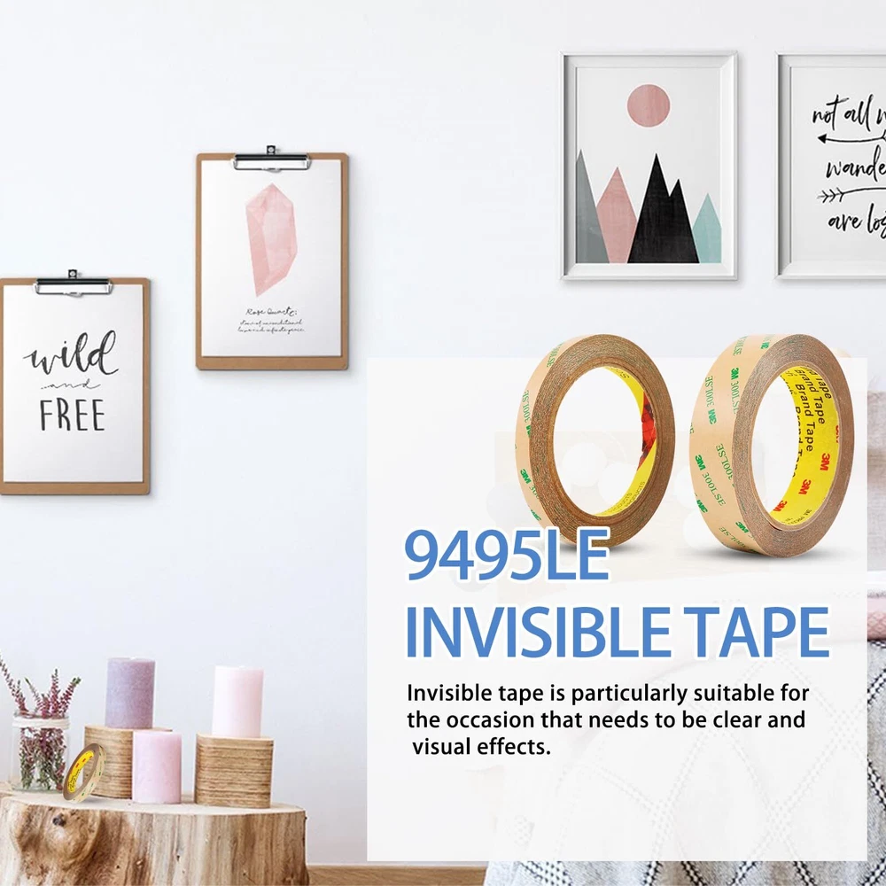 DOUBLE SIDED TAPE DATA: The 9495LE from the 300LSE series, an ultra-thin adhesive tape measuring just 0.17mm in thickness, 10mm in width, and a length of 45ft (13.75m). This PET tape offers long-term temperature resistance up to 90°C and short-term temperature resistance up to 149°C WIDELY USE: This heavy duty double sided tape tape with robust adhesion, perfect for a myriad of uses including scrapbooking, package wrapping, arts and crafts endeavors, picture hanging, as well as poster and LED light strip installations. It’s also particularly suited for DIY automotive decoration, prototype component fabrication, or electronic equipment repair MULTIPURPOSE STICKY MOUNTING TAPE: This mounting tape providing high bonding strength to most surface materials including plastic, metal, leather, rubber, glass, painted surfaces, etc. and it’s easy to remove without leaving any residue or damage HOW TO USE THE TAPE: Before using this clear double sided tape, ensure that the surface is clean, dry, and no oil or dust. Cut the desired length of tape and gently press it onto the surfaces to be bonded, ensuring full contact. Optimal bonding strength is achieved after approximately 24 hours (bonding strength reaches 90% after 24 hours) INVISIBLE TAPE: With transparent design, the tape leaves no visible traces when used, maintaining a clean and neat surface. It can be widely used in homes, classrooms, studios, and other settings.