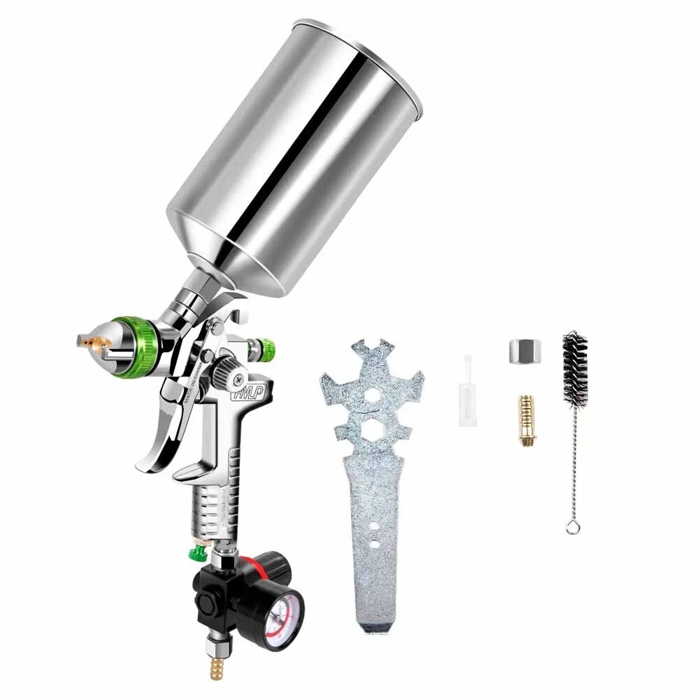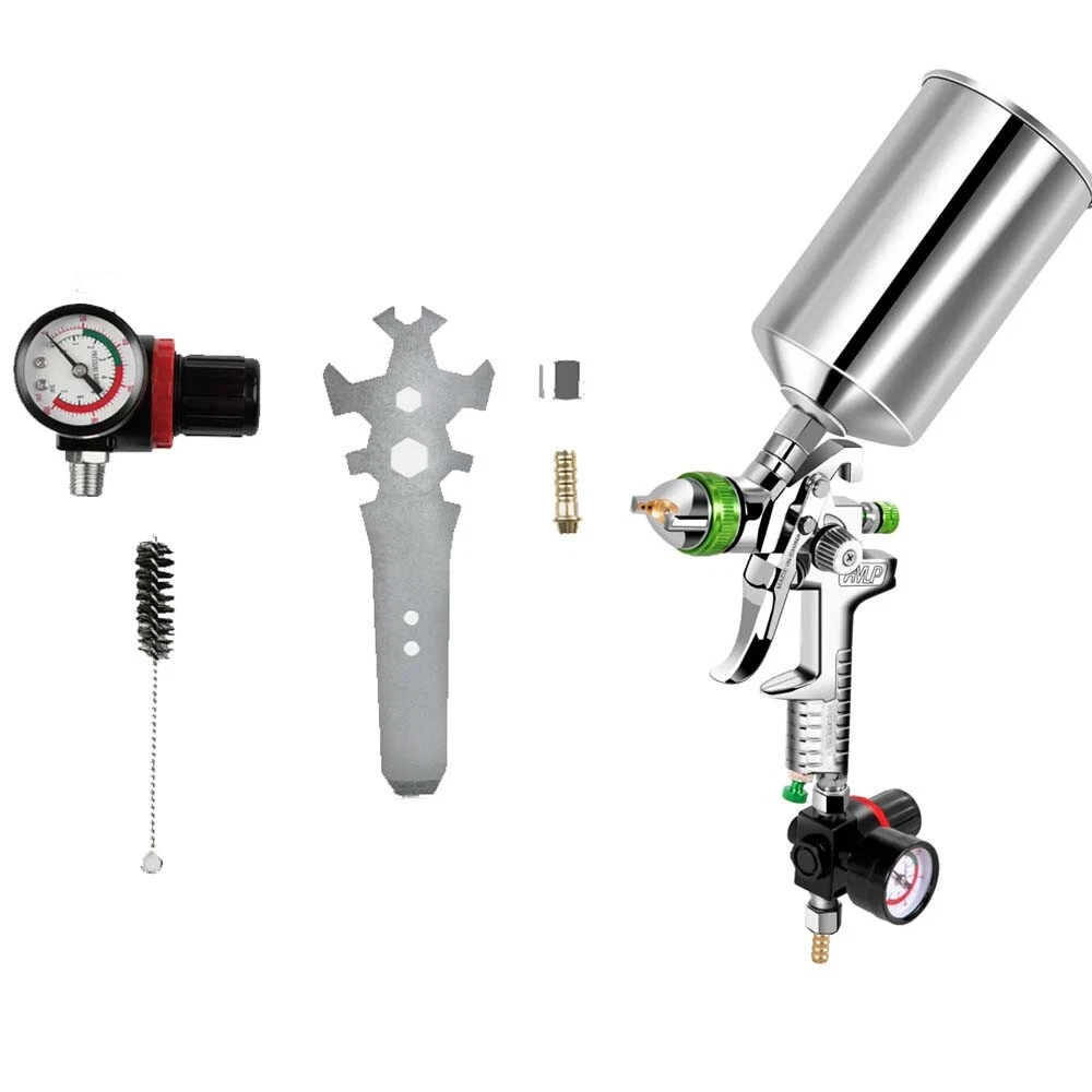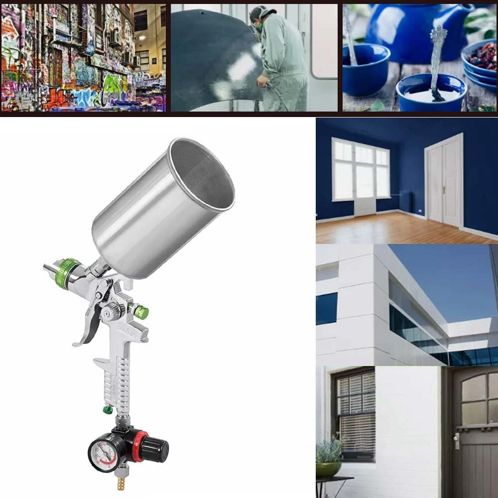 HVLP Air Spray Paint Gun W/ Air Regulator 2.5mm Tips Nozzle 1000cc Metal Can US