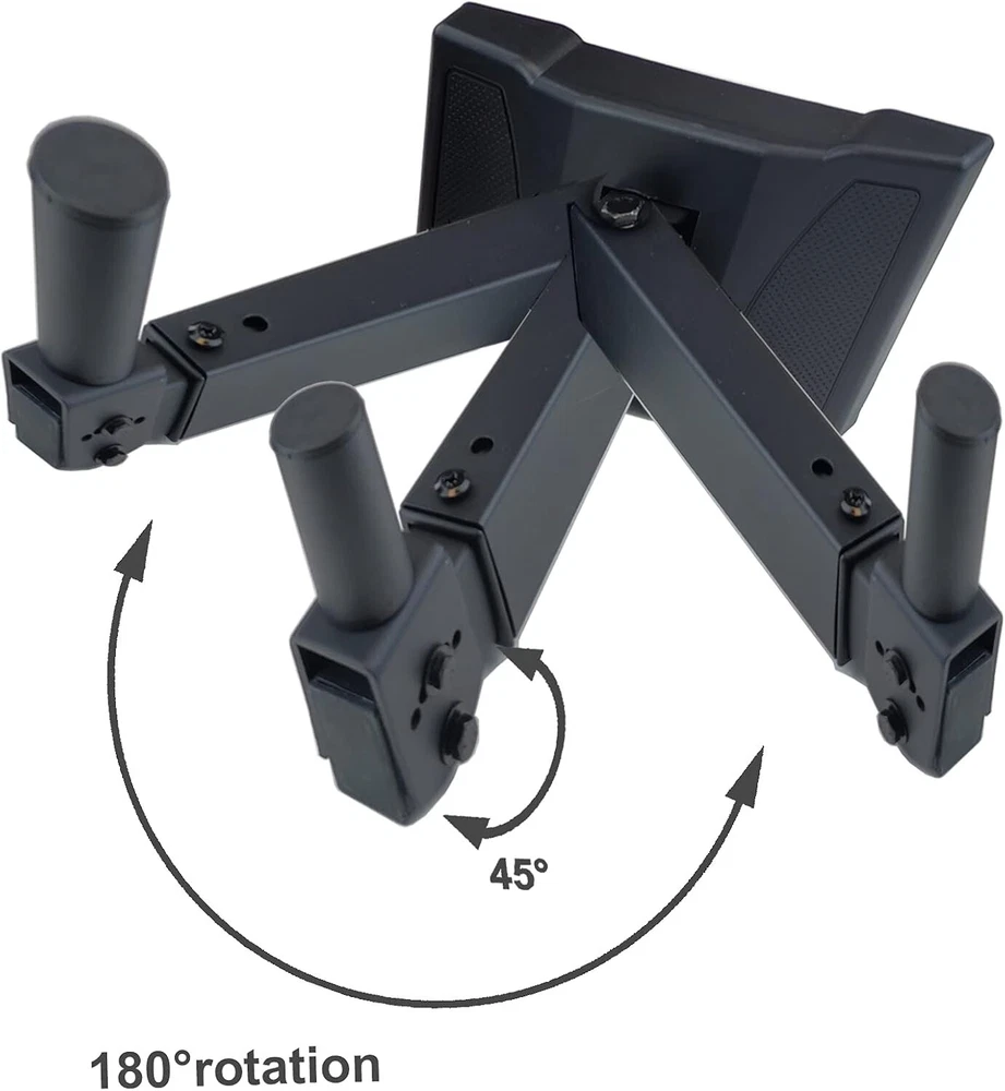HW-339 Speaker Wall Mount, Wall Mount Speakers Brackets Support up to 100lbs Swivel & Tilt, PA Speaker Wall Mount for Large Speakers, Mounting Screws Hidden(2 Packs, Black) ELEGANT AND SLEEK: Unlike other speaker stand pole mount, this dual mounts are decorated with ABS cover to have the screws hidden. It presents an elegant and sleek look especially when installed at home; Full-Motion Telescoping Arm: The wall ceiling mounts have 5 positions and can be extended from the wall, 180° left to right and 45° up and down. This intelligent design makes it professional to hold any speakers heavy or light large or small; SAFE AND SECURE: This dual speaker holder features with heavy duty reinforced solid steel construction in black finish. The ceiling/wall mounts apply 3mm thickened & larger base with loading capacity 100 lbs /45 kg; UNIVERSAL AND COMPATIBLE: This pair mounting is complemented by a sleek reinforced black coat for a contemporary appearance. The brackets fit the majority of speaker brands on the market. You can easily install within minutes; VERSATILE USE: Adaptable in a variety of settings. Ideal for home theaters, offices, living rooms, bedrooms, studios, schools, dorms, events, houses, public areas, hotels, lobbies, etc.