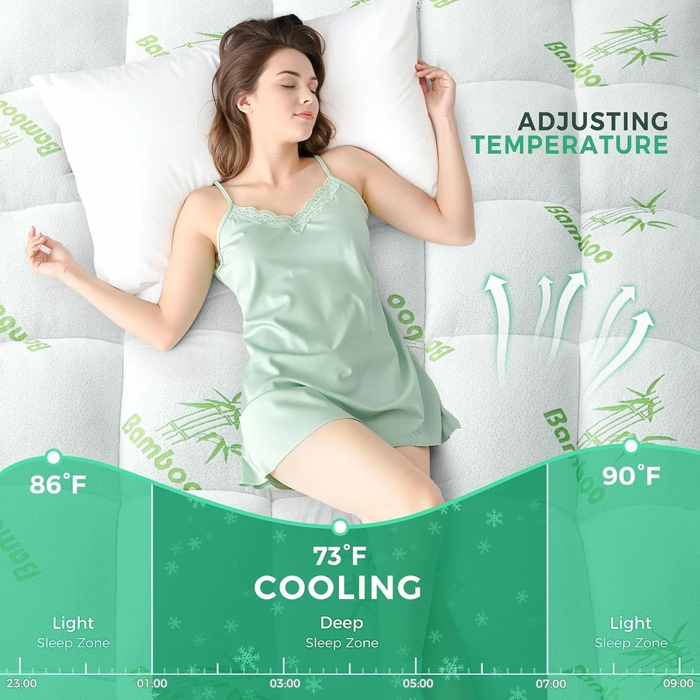 NUVOLETA Queen Mattress Topper - 100% Viscose Bamboo Cooling Cover in White
