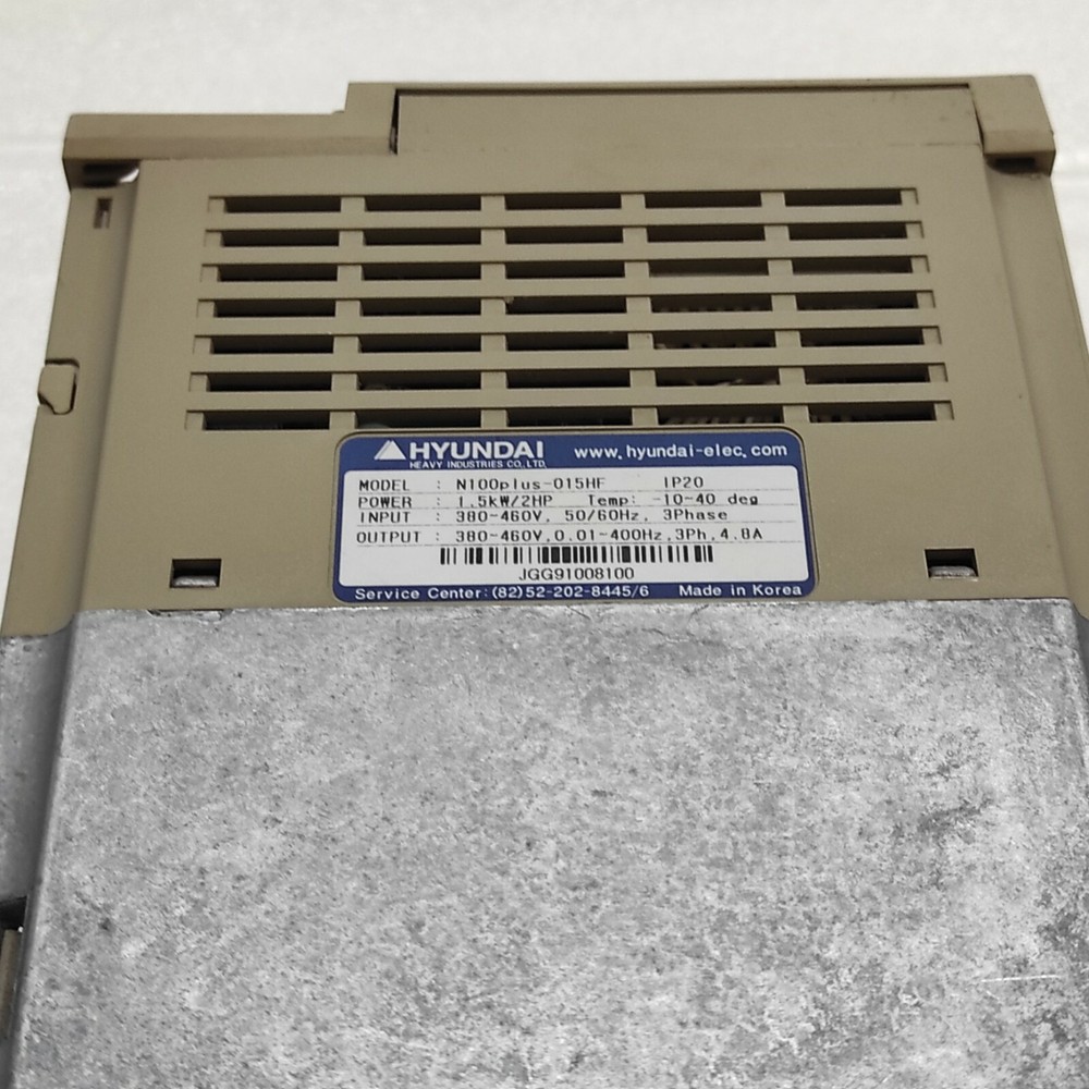 We are pleased to offer HYUNDAI N100PLUS-015HF 3-PH AC DRIVE 1.5kW/2HP Product Detail: HYUNDAI N100PLUS-015HF 3-PH AC DRIVE 1.5kW/2HP MODEL: N100PLUS-015HF POWER: 1.5kW/2HP INPUT: 3-PH 380-460V OUTPUT: 380-460V 4.8A MADE IN KOREA Shipment processing time: All orders are processed within 1-2 business days. Orders are not shipped or delivered on weekends or holidays. Shipment confirmation & Order tracking: You will receive a Shipment Confirmation email once your order has shipped containing your tracking number(s). The tracking number will be active within 24 hours. Customs, Duties and Taxes: We are not responsible for any customs and taxes applied to your order. All fees imposed during or after shipping are the responsibility of the customer (tariffs, taxes, etc.). Damages: In case of damage or lost of shipment during transit, We will investigate the matter and provide the satisfactory resolution. Returns Policy: We offer return or exchange of ordered item up to 30 days of receipt of goods in subject to certain condition. In case of damaged goods we shall offer the replacement or refund for the ordered item. If you require any more details, request you to send us the direct message through eBay for early resolution. Thanks