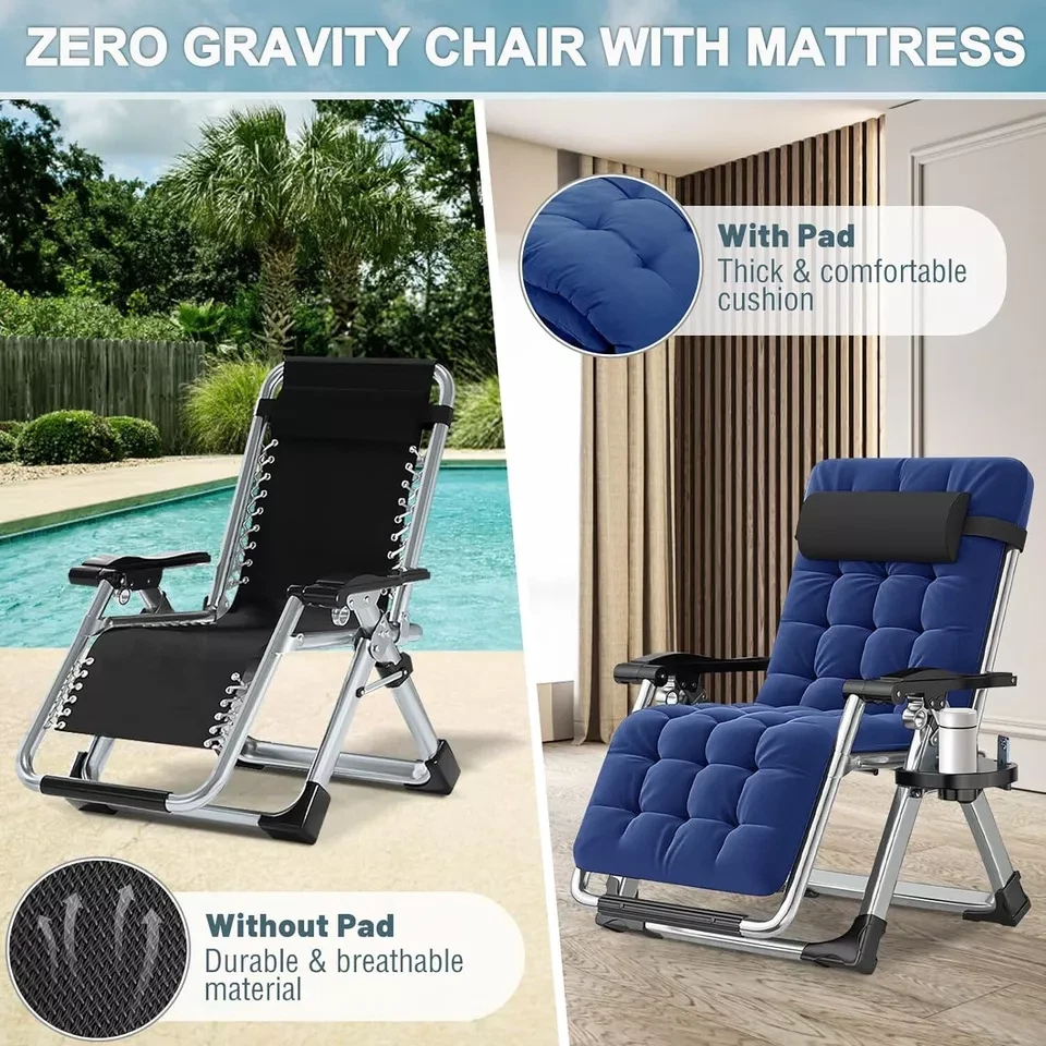Sturdy Frame - The folding chair is built with premium quality materials, which provide increased durability and resistance. The living room chairs can take over 440 pounds of weight and it is extra sturdy and will last you a lifetime. Removable Soft Pad - Intuitive design features that this recliner chair can be used by anybody. The pad is soft and removable which is more comfortable and warm when sitting. You can remove the soft cushion from the folding lounge chair to promote better airflow during hot summer days. Adjustable Foldable Chair - The reclining chair uses a triangle locking system to lock the chair in different positions, this amazing feature helps you select the optimal angle that brings you to a comfortable, relaxing position. Easy to Use - This lounge chair is very easy to assemble. No tools needed! Just open the box and take out of the chair and unfold it, then you can use it. It'll only take you a few seconds. The foldable design makes it easy to carry. Wide Application - Perfect chairs for indoor and outdoor use. Whether relaxing by reading a book or take a break, this comfortable folding chair is the best choice. It can be used indoors, living room and office, for outdoor activities, such as camping, beach, patio, pool, lawn, garden, deck, balcony. Package include: 1 Pack 90º to 170º adjustable chair 1 Pack Headrest 1 Pack Removal Cushion ☁ Feature: 1. Multi‑angle adjustable and ergonomic design. Satisfy your comfortable experience. 2. Using thick composite high‑strength Oxford cloth, safe and breathable, dirt‑resistant. 3. Reinforced fastener, sturdy steel pipe structure, more durable ad comfortable. 4. Safety non‑slip foot pads are used at the bottom to prevent rollover when turning over. 5. Light weight and folding design for easy storage, transport and perfect of summer. ☁ Specification: ▶ Item Type: Folding Chair ▶ Material: Steel Pipe + Oxford Cloth ▶ Color: Gray ▶ Size: Approx.45X26X28inch ▶ Weight: Approx.18.7lbs ▶ Adjustment Angle: 90°-170° ▶ Bearing Weight: 440lbs ▶ Mattress Color:Blue ▶ Mattress Material:Pearl Cotton Mattress & Gray short fleece