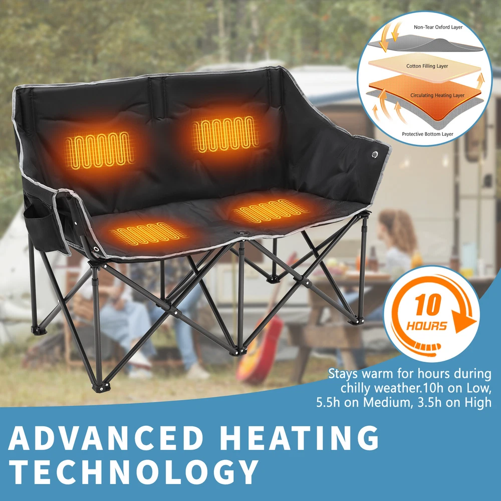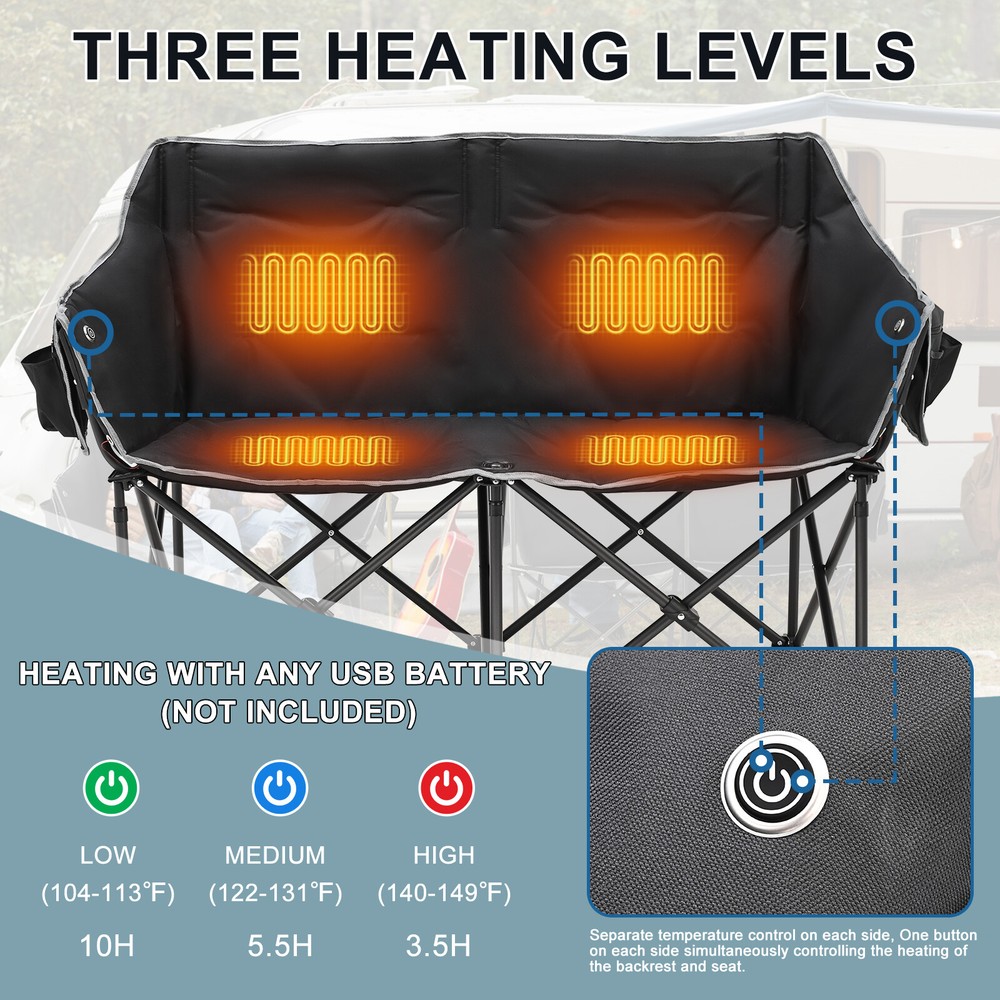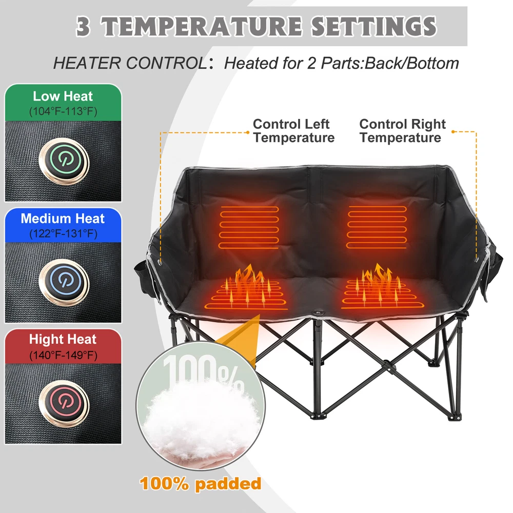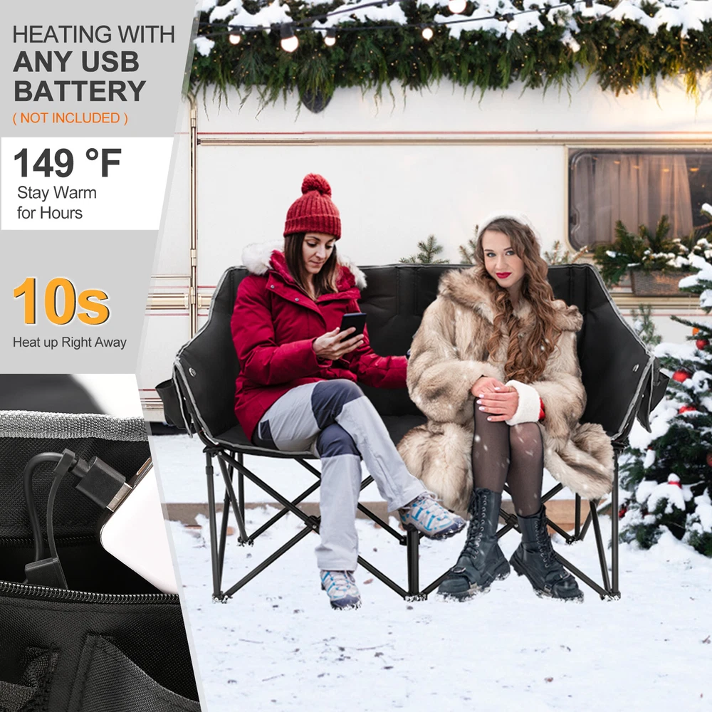 H&ZT Oversized Heated 2-Person Camping Loveseat with 3 Heat Levels & Battery