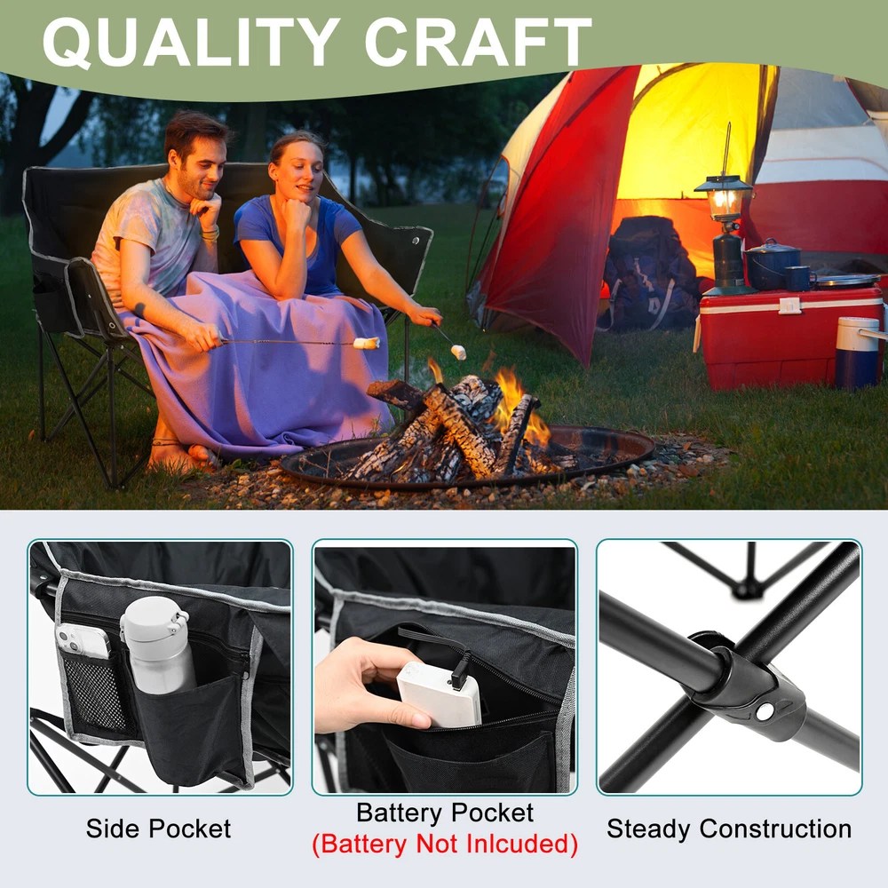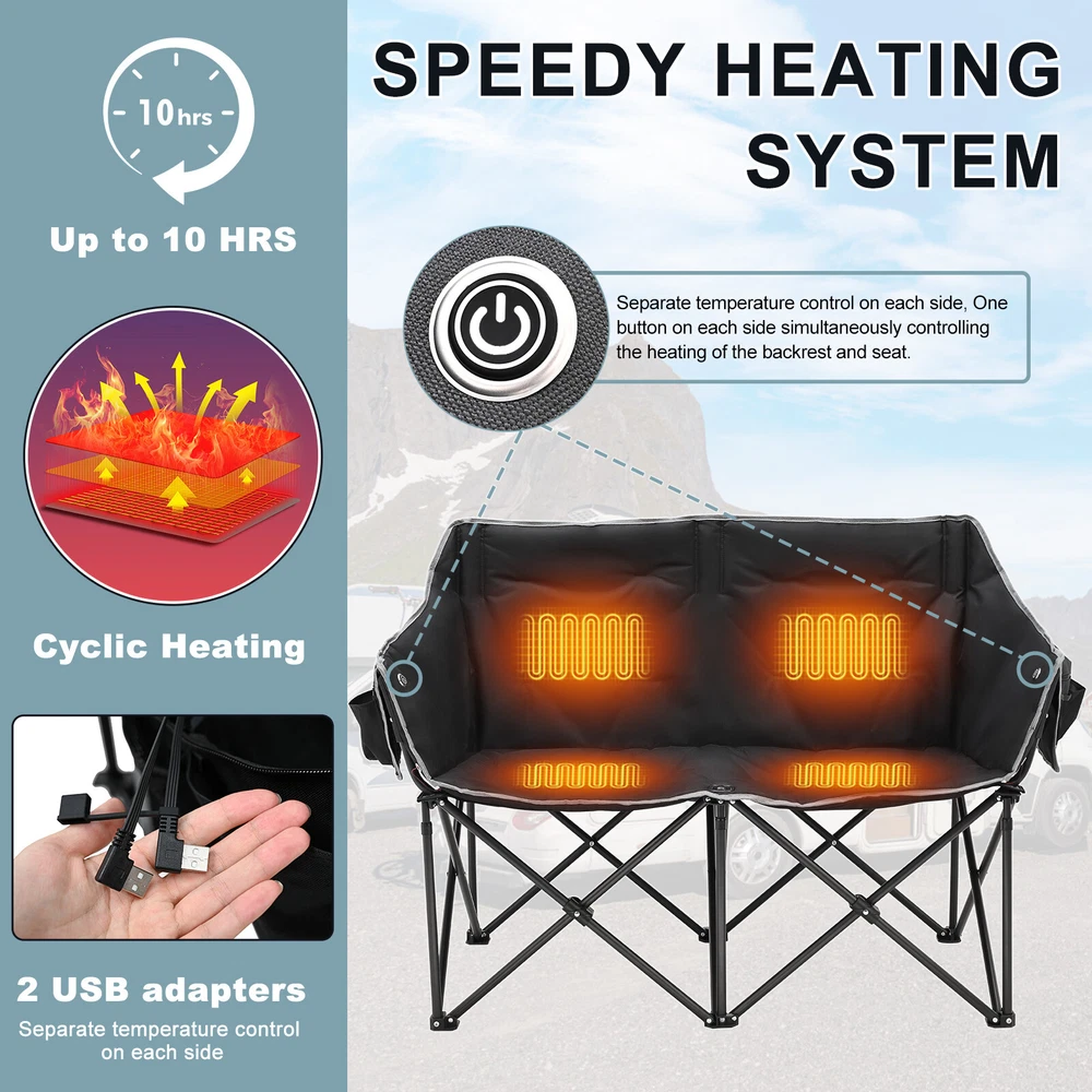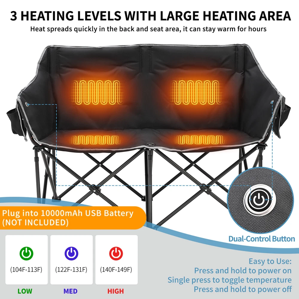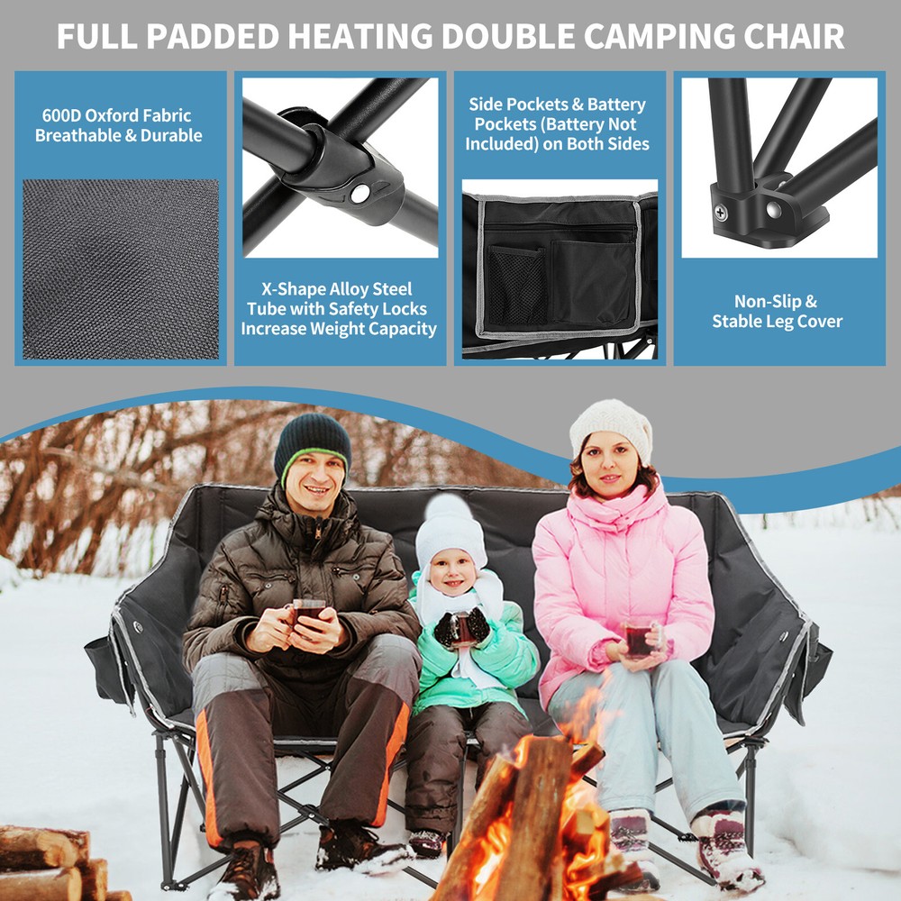 H&ZT Oversized Heated 2-Person Camping Loveseat with 3 Heat Levels & Battery