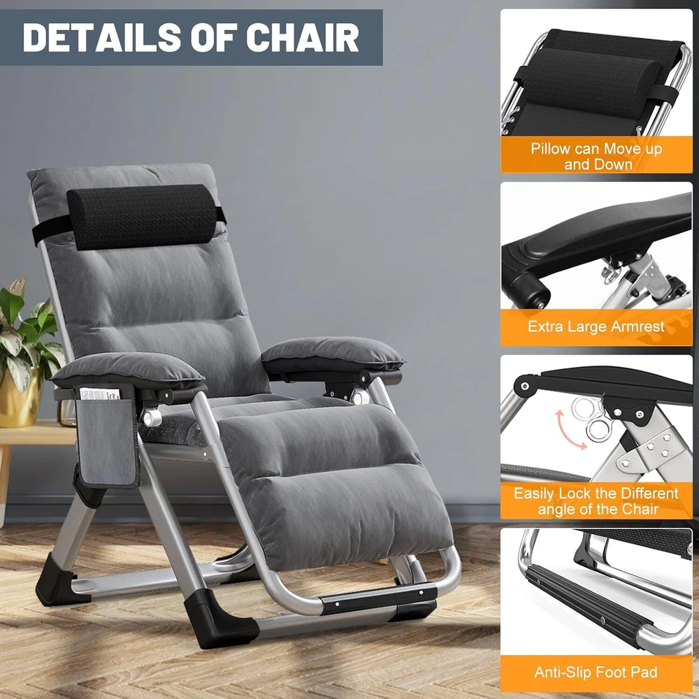 【 COMFY BEDROOM CHAIR 】 Whether you're reading your favorite novel, watching a TV show, or even doing homework, this cozy chair is all you need to make everything more relaxed and comfortable. Holds Up To 440 Pounds. 【 HEAVY DUTY 】The folding chair is built with premium quality materials, which provide increased durability and resistance. The steel pipe of the living room chair is thickened, so that the chair does not shake or collapse, and the bearing capacity is greater and safer. Upgrading the fabric to make you feel more comfortable; 【 MULTIPURPOSE USE 】Whether you want to relax by reading a book or take a quick break, this comfortable chair is the ideal solution. It can be used for indoor relaxation and outdoor activities, such as family gatherings, barbecues or beach days, or in the office; 【 EASY to USE 】This folding chair can be folded and unfolded in seconds. The lounge chairs are easy to transport and store, and you can easily carry them by car. Suitable for living room, terraces, lawns, gardens, yards, balconies, poolsides and beaches; 【 ONE-YEAR WARRANTY 】We provides all customers with a one-year warranty for the purchase of our chairs. Regardless of the reasons for dissatisfaction with our products, we will provide you with good solutions and the best service.