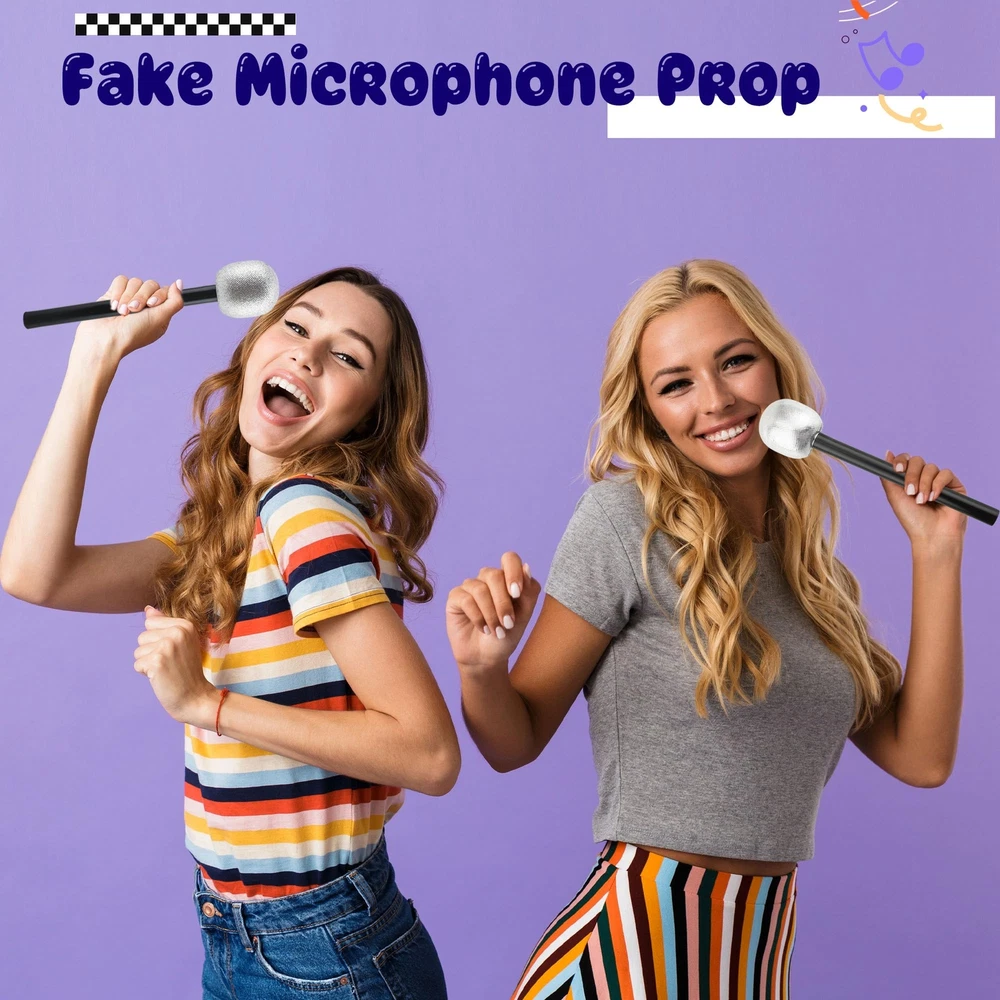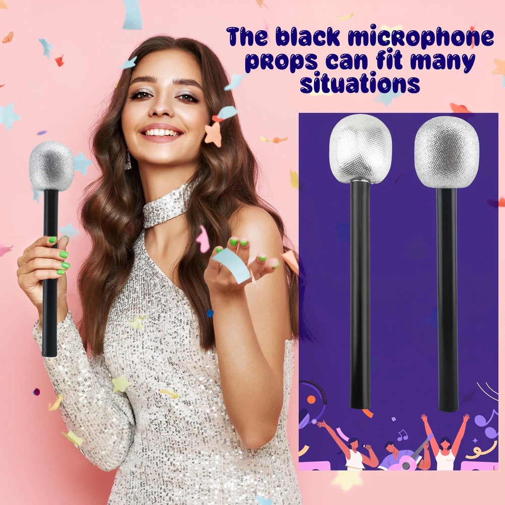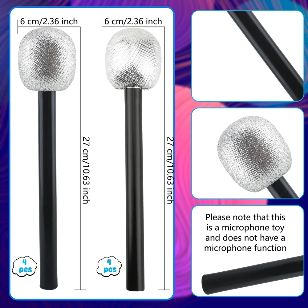 Haconba 8 Pack Microphone Toy Fake Plastic Glitter Stage Mic Costume Prop for...