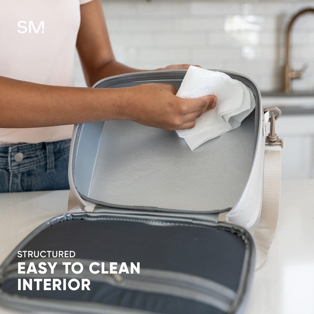 Versatile: This lunch bag features a comfortable shoulder strap and is ideal for kids or adults. Great for school, picnics, road trips, lunch at the office, the beach and more! Easy to Clean: Interior lining is triple insulated and water resistant Stylish: Carry your lunch in style with our aesthetic design and trendy colors Spacious: 4L bag measures 11.4 x 9.6 x 3.5 inches (WxHxD) Pat/Pat Pending