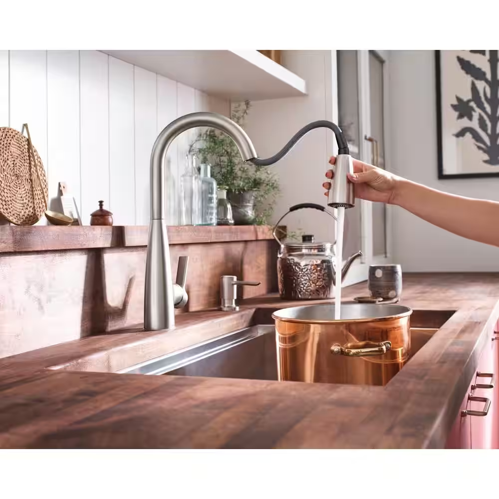 Fast Shipping On All Items 30 Days Money Guarantee Customer Support Excellent Service 100% Satisfaction Satisfaction Guaranteed Haelyn Single-Handle Pull-Down Sprayer Kitchen Faucet with Reflex and Power Boost in Spot Resist Stainless Specification Cartridge Valve Type Ceramic Disc Faucets Color Family Steel Color/Finish Spot Resist Stainless Commercial / Residential Residential Faucet Height (in) 15.93 in Faucet Hole Fit Single Hole Faucet Hole Spacing No Spacing - Single Hole Faucet Type Pull Down Features Pull Out Spray Wand,Secure Docking,Spot Resistant Finish Family Stainless Flow rate (gallons per minute) 1.5 Hub Required No hub connection available Included Components No Additional Items Material Zinc Mount Location Deck Mount Number of Faucet Handles Single Handle Remote Access No Remote Access Requires Hub? No Hub Required Returnable 90-Day Sensor Activation No Sensor Spout Swivel Type 360 Degree Spout Swivel Valve material Ceramic Certifications and Listings ANSI Certified,ASME Certified,CSA Certified Manufacturer Warranty Limited Lifetime Warranty Connection size (in) 3/8 In. Extended Hose Length (in) 68 Spout Height (in) 7.86 Spout Reach (in) 15.85 in 68.0 inches x 15.93 inches. Weight: 0.0 grams Item Description Power Boost technology provides up to 50% faster clean and fill Features Duralock quick connect system for easy installation Backed by a limited lifetime warranty The Haelyn family offers a classic style and 1-handle convenience. Soft geometric curves and uncomplicated style features give the Haelyn collection an ageless yet fashion-forward presence. Tailored yet relaxed, the Haelyn collection is an exercise in design balance. Spot resist stainless finish resists fingerprints and water spots for a cleaner looking kitchen Equipped with the reflex system for smooth operation, easy movement and secure docking of the pulldown/pullout spray head Power Boost technology provides boosted water performance with the push of a button with - faster clean. faster fill. Matching accessory: soap dispenser included Optional deckplate included - compatible with 1,2,3 or 4 hole installation Standard design: mounts on the sink or countertop ADA compliant: complies with Americans with Disabilities Act (ADA) specifications Backed by MOEN's lifetime limited warranty to ensure superior quality About us We offer the best prices around on high quality products. Our E-store includes media such as books, movies, music and games while offering electronics, toys, sporting apparel, clothing, tools, general home, garden items and more. Shipping We are always working hard to ensure your package arrives as soon as possible. Please understand that some factors like weather, high postal traffic, and the performance of shipping companies are outside of our control. We offer free shipping to the lower 48 states and ship within 2-3 business days of payment, usually sooner. We do not accept P.O. Boxes. Please provide a physical address. For shipping outside of the continental USA, we only use eBay's Global Shipping Program.The item is shipped to KY and then sent to the rest of the world. International customers are responsible for all duties and taxes. Continue to check out to calculate costs for shipping the item to your country. Messages regarding eBay's Global Shipping Program MUST be directed at eBay EXCLUSIVELY. Returns We offer a 30-Day Return Policy on items in which you are not completely satisfied with. You have the option of a full-refund or an exchange of the item. No returns are available on items shipped outside of the USA Satisfaction We try over very best to make sure every customer is completely satisfied. If there's a problem, message us! We're happy to help. Payment Options Shop With Confidence