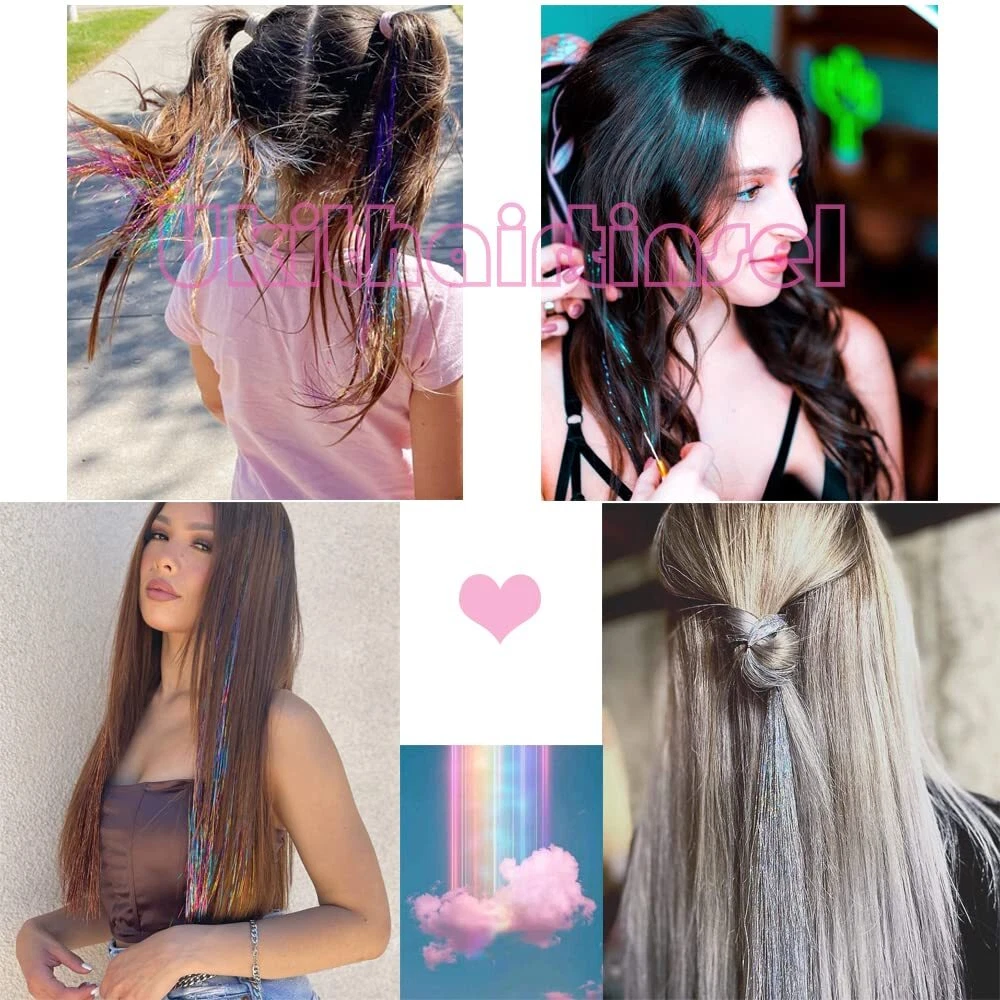 Hair Tinsel Kit with Tools: 15 Colors 4200 strands hair tinsel , 1 piece crochet, 1 piece plier, 200 pieces micro silicone link rings beads (100pcs black + 100pcs brown), 2pcs Ponytail Hoop Tools,1pc Rat Tail Comb,1piece hair clips, 1 pack of Colorful rubber bands as a gift. Definitely worth it for the money. Hair Tinsel Safe: Hair tinsel made by 100% high quality polyester fiber hair tinsel. Safe, , tasteless and will not fade. Can be washed, blow-dried, straighten, ironing,cut into different length according to your hair extension requirements. Each color tinsel is packaged separately, which is more easy to identify and use. Fairy Hiar tinsel Easy Match Your Style: The hair tinsel is the latest trend in hair fashion and the perfect hair accessory for girls of all ages.Adds amazing colors and sparkle to hair. create charming and eye-catching effect , you get tons of compliments. Tinsel Hair Extensions: The hair tinsel strands 48 Inch are long enough , cut into different length according to your hair extension requirements.15 Colors to Choose:Pink White, Symphony Pink, Orange, Gold, Silver, Pink, Violet, Sky Blue, ,Champagne Gold , Rose Red, Black, Red, Blue, Green, Rainbow.a variety of colors meet the various styles of fairy hair, Release Your Charm. Service: If you have any question or problem about the Hair tinsel kit, We provide 24-hours .