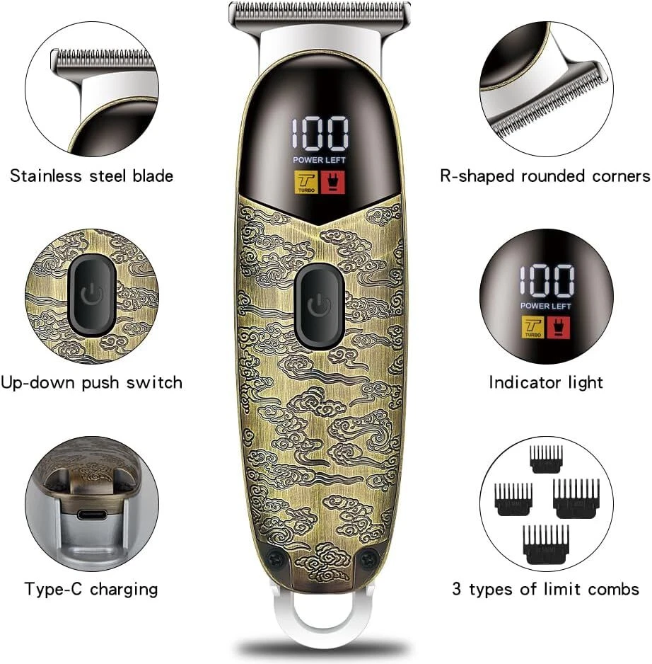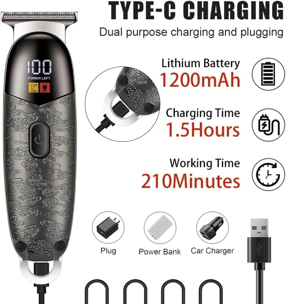 Free eBay listing template designed by dewiso.com Hair Trimmer for Men Professional, Grooming Cutting Kit, Mustache T Blade Liners Trimmer Electric Shavers, Cordless Zero Gapped Edgers Clippers Barber Supplies, Gifts for Men (Gray) FREE AND FAST SHIPPING! About this item 【Durable Zero-Gapped Blade Set】 Precision Cutting with our cordless trimmer to achieve sharp, clean lines every time with, equipped with durable DLC (Diamond-Like Carbon) coated blades for unparalleled cutting performance. 【Consistent Performance with a Fast Rotary Motor】 Our trimmer's advanced motor exceeds 7500 RPM, coupled with a 3V constant power supply, providing steady cutting speeds. This ensures optimal operation for precise and reliable results during every grooming session. 【Quiet T-Blade】 Our T-blade trimmer ensures impeccably sharp lines with whisper-quiet operation below 75dB. It offers a tranquil grooming experience without compromising on performance. 【Rechargeable Cordless Convenience】 Experience the freedom of our professional hair and beard trimmer, featuring a robust cordless design and USB-C fast charging. Enjoy up to 120 minutes of precise trimming with a single charge for seamless grooming anytime, anywhere. 【Professional & Personal Trimmer】 Suitable for expert barbers and grooming enthusiasts alike, this trimmer is versatile enough to serve everyone’s needs. It delivers high-quality performance whether used in a professional setting or for personal grooming at home. Product We offer a 30-Day Return Policy on items which you are not completely satisfied with. You have the option for a full-refund or an exchange of the item. No returns are available on items shipped outside of the US . Shipping We offer Free Shipping to the US and ship within 2 business days of payment, usually sooner. We use UPS express shipping. That's why your products are usually delivered within 3 days . Contact We try our very best to make sure every customer is completely satisfied. If there's a problem , message us! We're happy to help. 24/7 live chat available.