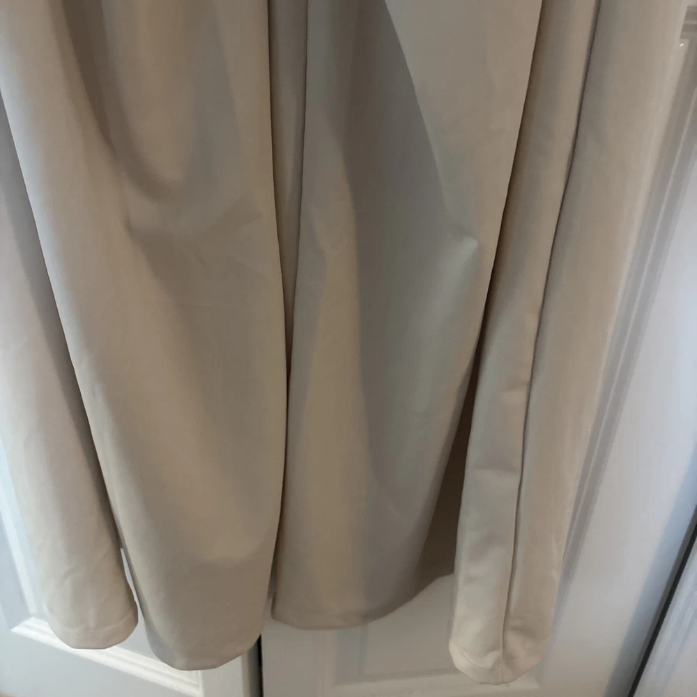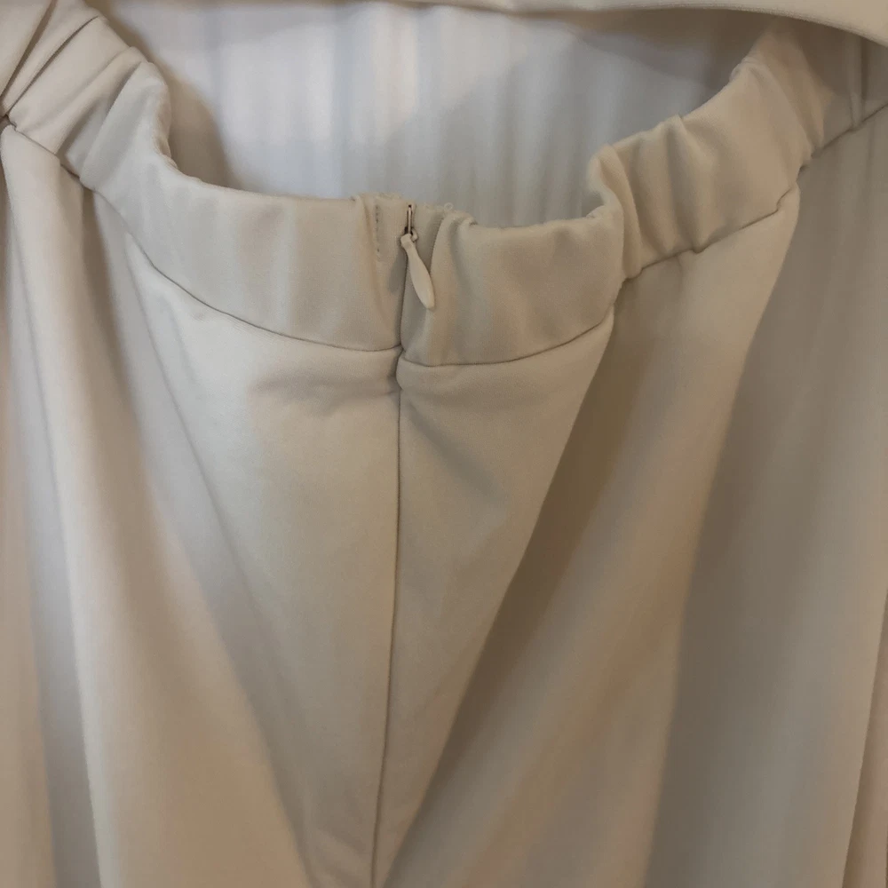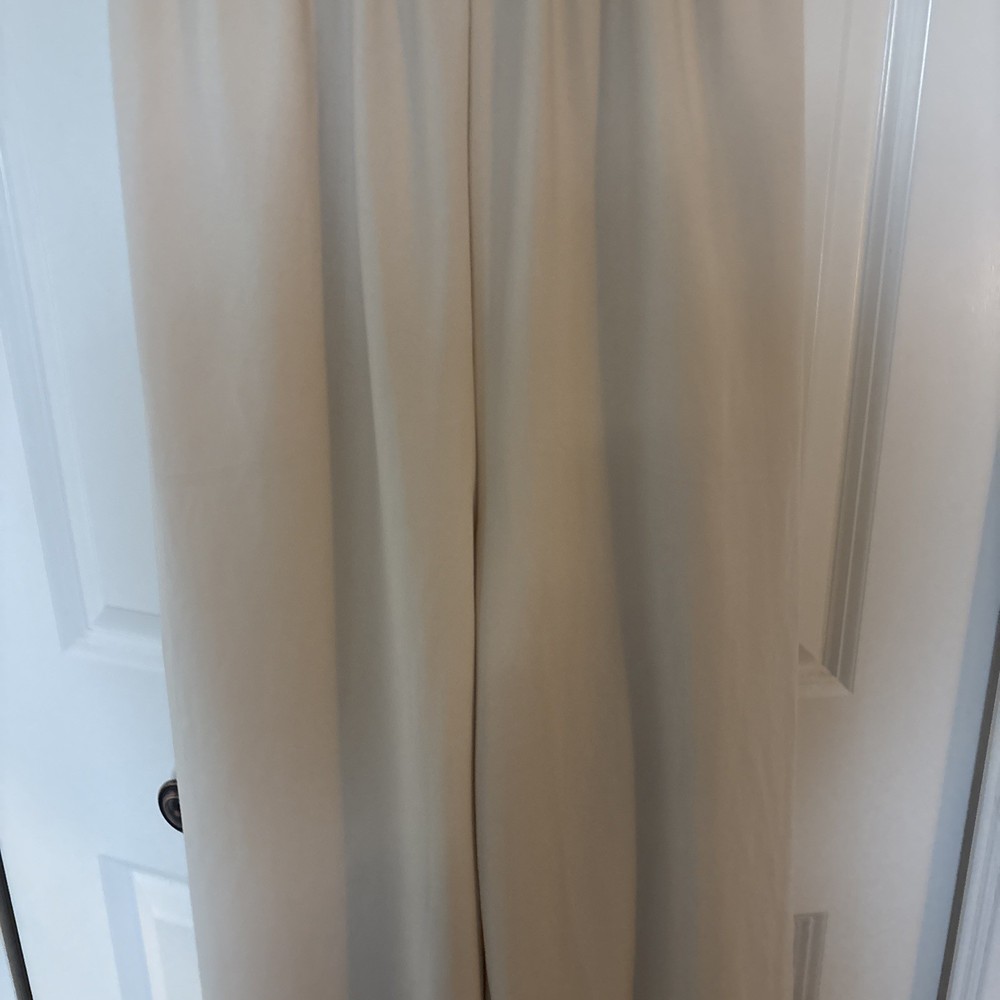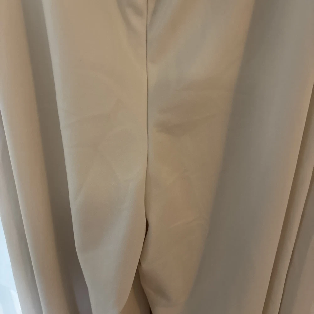 The product is a halara off white jumpsuit in women's size medium, featuring a sleeveless design with a V-neckline. It is a one-piece garment perfect for casual occasions, made of polyester material that is machine washable. This ivory jumpsuit has a wide-leg style, ideal for the summer and spring seasons. It is a stylish and versatile option for any woman's wardrobe, representing the brand's standard size and regular fit.