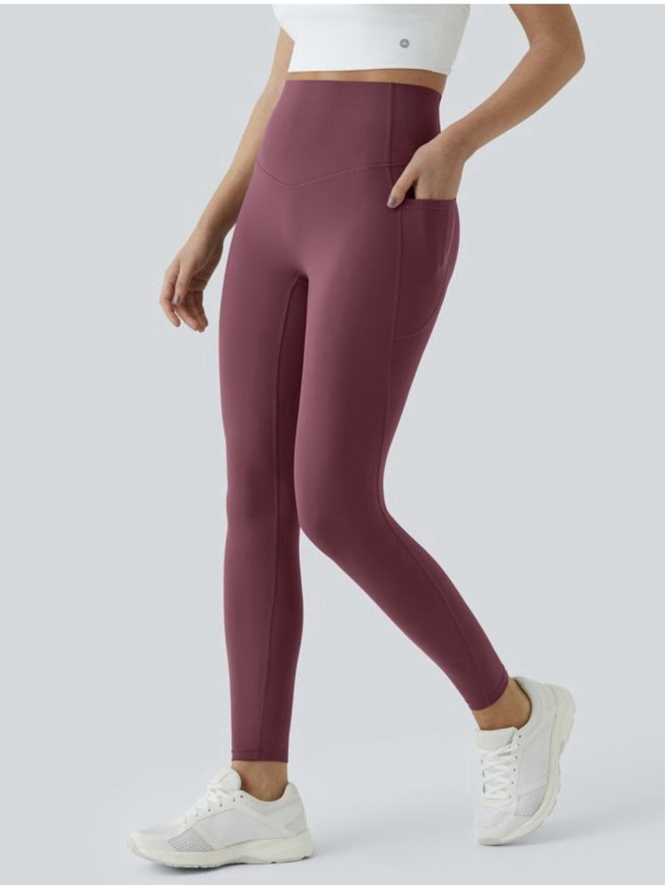 The Halara UltraSculpt SoCinched High Waisted Tummy Control Pocket Leggings in size S are a stylish and comfortable option for women. With a solid red color and a high-rise fit, these leggings are perfect for various occasions including travel, activewear, and casual wear. Made from a blend of polyester, nylon, and spandex, these leggings provide a secure fit while also offering pockets for convenience. Ideal for activities like gym training, walking, and yoga, these modern and athleisure-themed leggings are a versatile addition to any wardrobe. New in bag.