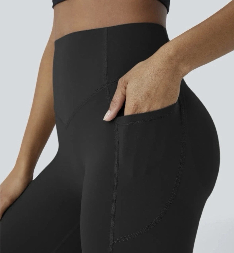 The Halara UltraSculpt SoCinched Scrunch Butt Lifting Tummy Control Leggings in size S are made from a blend of Nylon, Spandex, and Polyamide, making them comfortable for various activities like gym workouts, walking, and yoga. These black leggings feature a solid pattern and a cropped style, perfect for casual wear, activewear, or even travel. With features like shaping, seamless design, and pockets, these leggings offer both style and functionality for modern women looking for a combination of athleisure and sports themes in their wardrobe. New in bag