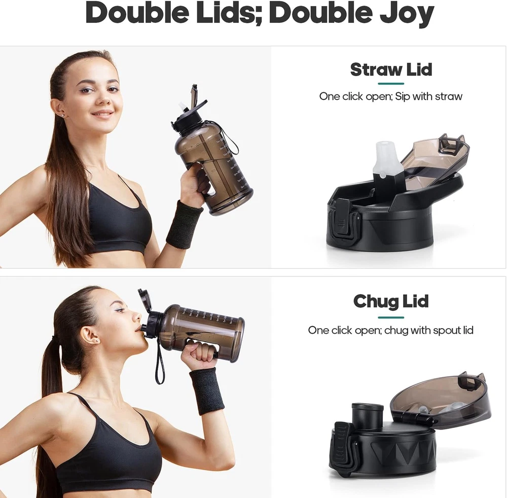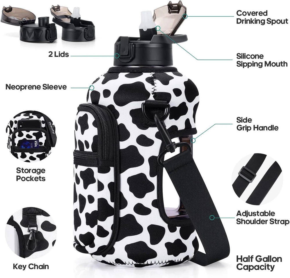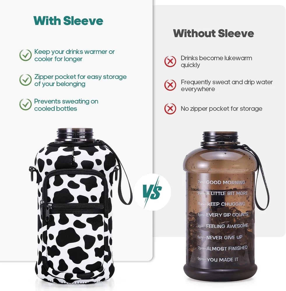 Half Gallon Water Bottle with Storage Sleeve, 74Oz Large Water Bottle with 2 Lid