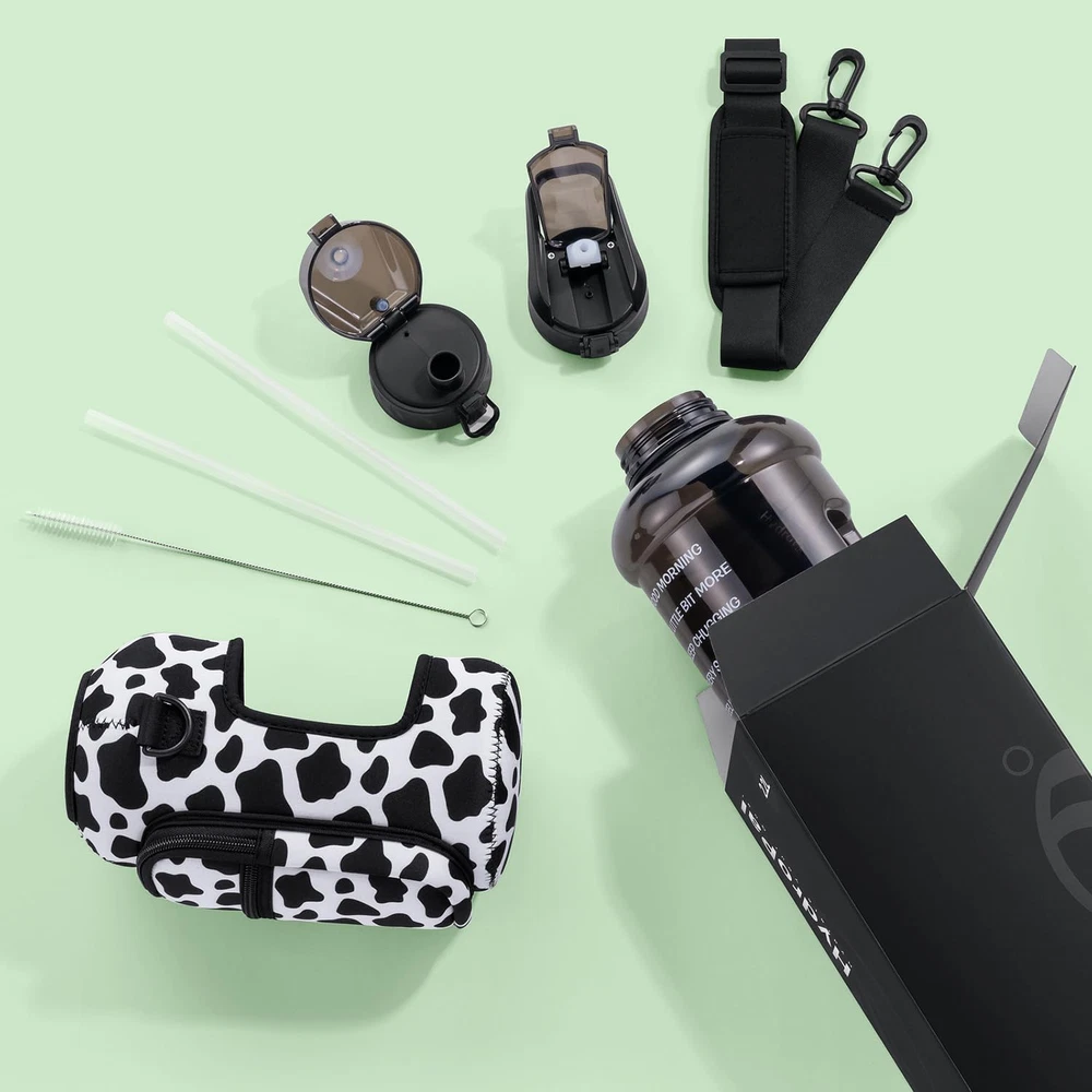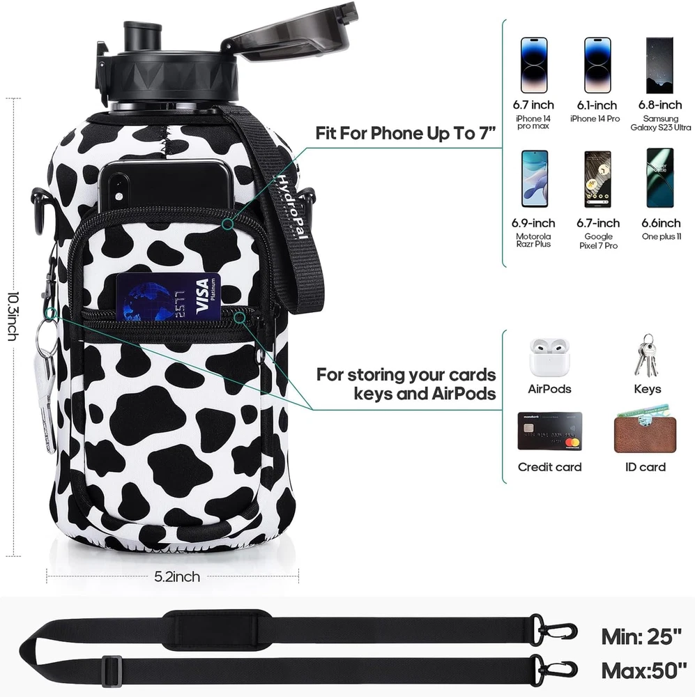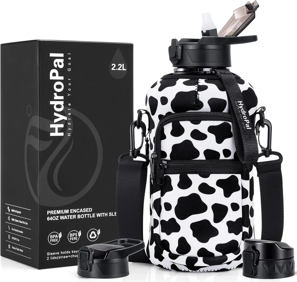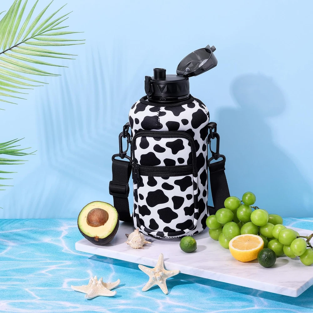 Half Gallon Water Bottle with Storage Sleeve, 74Oz Large Water Bottle with 2 Lid