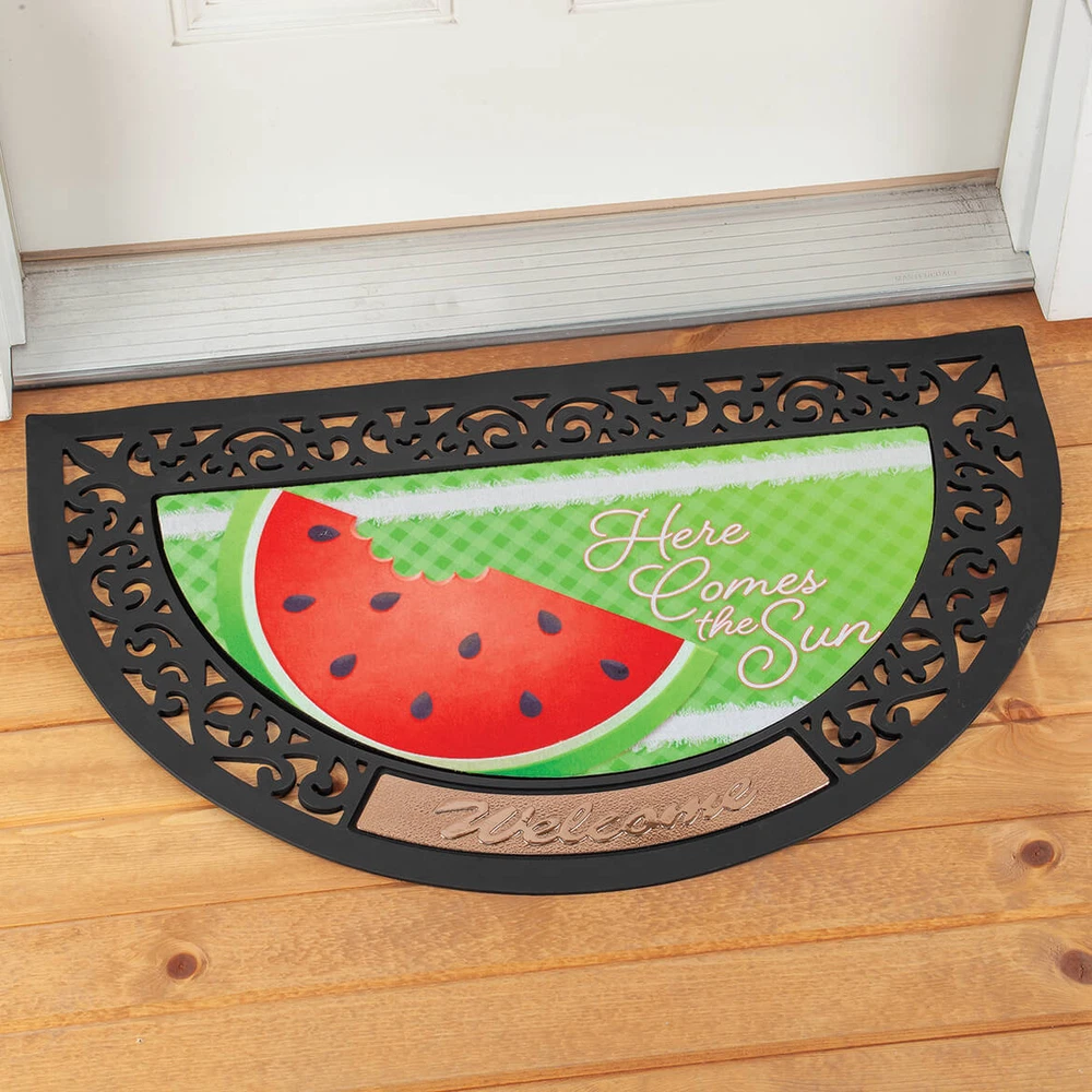 Friends and family will always get the right season's greetings when they arrive to half-round welcome mat inserts. Instead of purchasing five separate half-round doormats, you can save money and time with an interchangeable kit. Four of the door mat inserts represent the 4 seasons with messages like "Hello Spring", "Here Comes the Sun", "Give Thanks" and "Let it Snow" plus dazzlingly detailed artwork. The fifth insert is a celebration of "America the Beautiful" for patriotic holidays. All of them are contained within an elegant black scroll border frame that has a "Welcome" plate at the outermost edge. Warm hearts before they even enter the coat room by laying out a outdoor semicircle doormat with changeable insert placards. Both the frame and inserts are made of weather-resistant materia Powered by Frooition Buy one, get one at 15% off! On All Products Storewide SALE Holidays Home Kitchen Office Health Beauty Apparel Jewelry & Accessories Outdoor Entertainment Candy Shoppe Intimacy Automotive Accessories Half Round Welcome Mat with Five Seasonal Inserts Half Round Welcome Mat with Five Seasonal Inserts Item Description Friends and family will always get the right season's greetings when they arrive to half-round welcome mat inserts. Instead of purchasing five separate half-round doormats, you can save money and time with an interchangeable kit. Four of the door mat inserts represent the 4 seasons with messages like "Hello Spring", "Here Comes the Sun", "Give Thanks" and "Let it Snow" plus dazzlingly detailed artwork. The fifth insert is a celebration of "America the Beautiful" for patriotic holidays. All of them are contained within an elegant black scroll border frame that has a "Welcome" plate at the outermost edge. Warm hearts before they even enter the coat room by laying out a outdoor semicircle doormat with changeable insert placards. Both the frame and inserts are made of weather-resistant materials that can be spot-cleaned. At 31 1/2" long, this seasonal interchangeable semi-circle doormat will fit most standard doorways either by itself or with a rug underneath. Keep decor fresh with affordable prices and seven-day-a-week customer service by phone or email. About Us About Us Payment Shipping Customer Service About Us Welcome to Fox Valley Traders on ebay? where we specialize in providing an evolving selection of one-of-a-kind products at affordable prices. With roots dating back to 1935, our knowledgeable team is dedicated to bringing you high-quality, functional, and unique household products and gifts that won?t break the bank. Our mission is to continuously innovate and improve items based on customer needs and industry trends. We are the proud owners and developers of multiple brands, including Miles Kimball, Walter Drake, Easy Comforts, Holiday Peak, OakRidge, LivingSure, Exposures, NativeRemedies and PetAlive. Learn more about these brands and their product offerings below. We invite you to spend some time in our ebay storefront. Shop around, explore our brands, and read what other satisfied customers are saying. Let us know how we can help ? we would be honored to earn your business! Miles Kimball specializes in a wide variety of festive holiday decorations, handy kitchen gadgets, storage and organization solutions, gardening supplies, home décor, table covers, pets supplies, and gifts for everyone! We strive to delight our customers with hard-to-find gadgets and personalized gifts that are unique, unusual, and unexpected. Walter Drake has an extensive line of products that are functional problem-solvers for your home. Find great values in kitchen gadgets, cookware and bakeware, lawn and garden, bedding, calendars, and office supplies. Easy Comforts strives to make difficult times more comfortable, while helping you (or someone you care about) find solutions to life?s physical challenges. Discover value-priced health and personal care items including home security, bathroom safety, daily living aids, diabetic socks, dressing aids, incontinence solutions, and pain remedies. Holiday Peak is your one-stop holiday shop! Find seasonal décor to bring a warm and inviting holiday atmosphere to your home all year. We offer pre-lit, fully decorated Christmas trees, unique Christmas tree ornaments and heartwarming Christmas cards for the winter season. Keep your festive spirit alive all year with our seasonal indoor and outdoor decor for Valentine's Day, St. Patrick's Day, Easter, patriotic and fall seasons . OakRidge offers top quality home items at an affordable price. Bring the warmth and comfort of home to any space with our exclusive bed linens, bath essentials, small furniture, floral décor, and other home furnishings. LivingSure is on a mission to develop products that will help keep you safe, secure, and independent both inside your home and out. Find smart solutions for personal safety, home security, emergency radios, auto blankets, flashlights, ladders, step-stools, and more. Exposures knows the value of special moments and experiences and wants to help you preserve them forever. Celebrate life?s memories with our exclusive photo albums, frames, gifts, and home décor. NativeRemedies and PetAlive offer homeopathic health and wellness products for your whole family, including your pets! Enjoy our quality herbal and natural remedies for treating common ailments. Payment Payment We accept PayPal payments only. Sales Tax: For shipments to Wisconsin addresses, we are required by State law to collect Sales Tax. Shipping Shipping In order to keep things simple for you, Fox Valley Traders offers $1.99 shipping on Ebay for all Continental US Street and PO Box addresses. We use standard shipping for all orders in the continental US. Please allow 7-9 days for delivery Customer Service Customer Service If you have any questions about the item, please click the "Ask a question" link below. All returns must be made within 45 days from the date of shipment. We carefully inspect ord