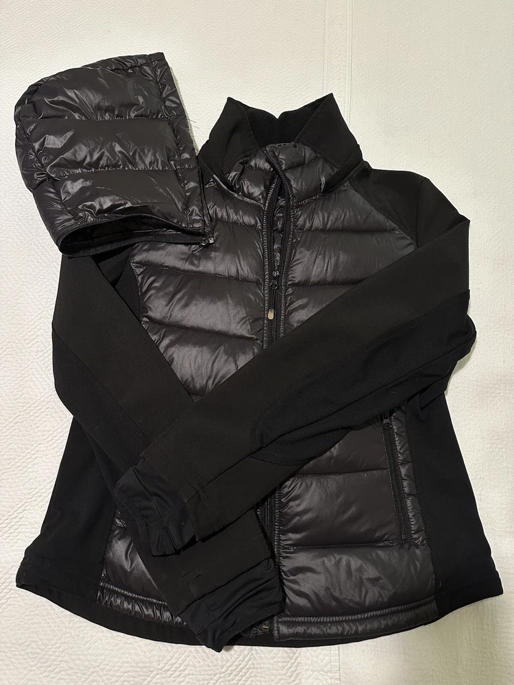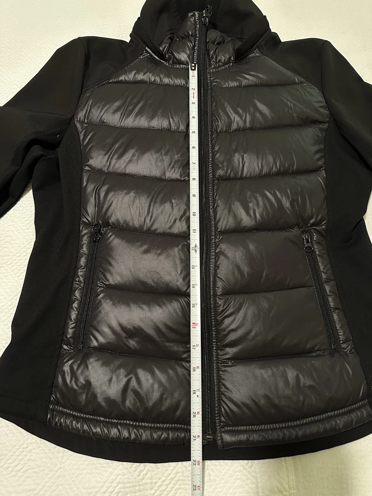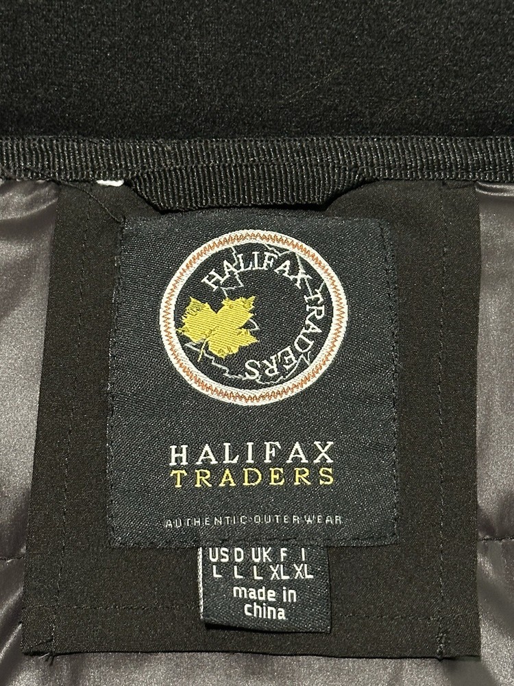 Halifax Traders Black Down Puffer Jacket. Full Zip, Removable Hood, Size L Women In gently used conditions