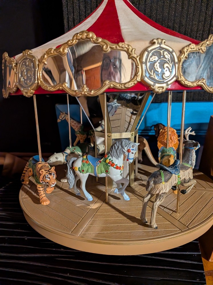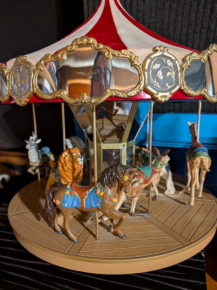 The Hallmark 2004 Keepsake Christmas Musical Carrousel is a festive ornament set that includes 8 animal-themed ornaments. Each ornament features a different animal design, perfect for Christmas celebrations. The set also includes lights and a musical feature, adding an extra element of charm to the holiday decor. This collectible item from Hallmark brings a touch of nostalgia and whimsy to any Christmas tree.