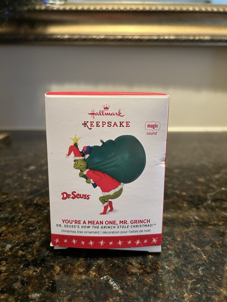 The Hallmark 2016 Grinch "You're a Mean One" Singing Keepsake Ornament is a festive and nostalgic decor piece perfect for the Christmas season. This multicolored plastic ornament, featuring the beloved Grinch character from the Dr. Seuss franchise, plays a classic song and is a great addition to any holiday collection. With its contemporary style and original production, this keepsake ornament captures the magic and whimsy of Christmas in a unique and charming way.