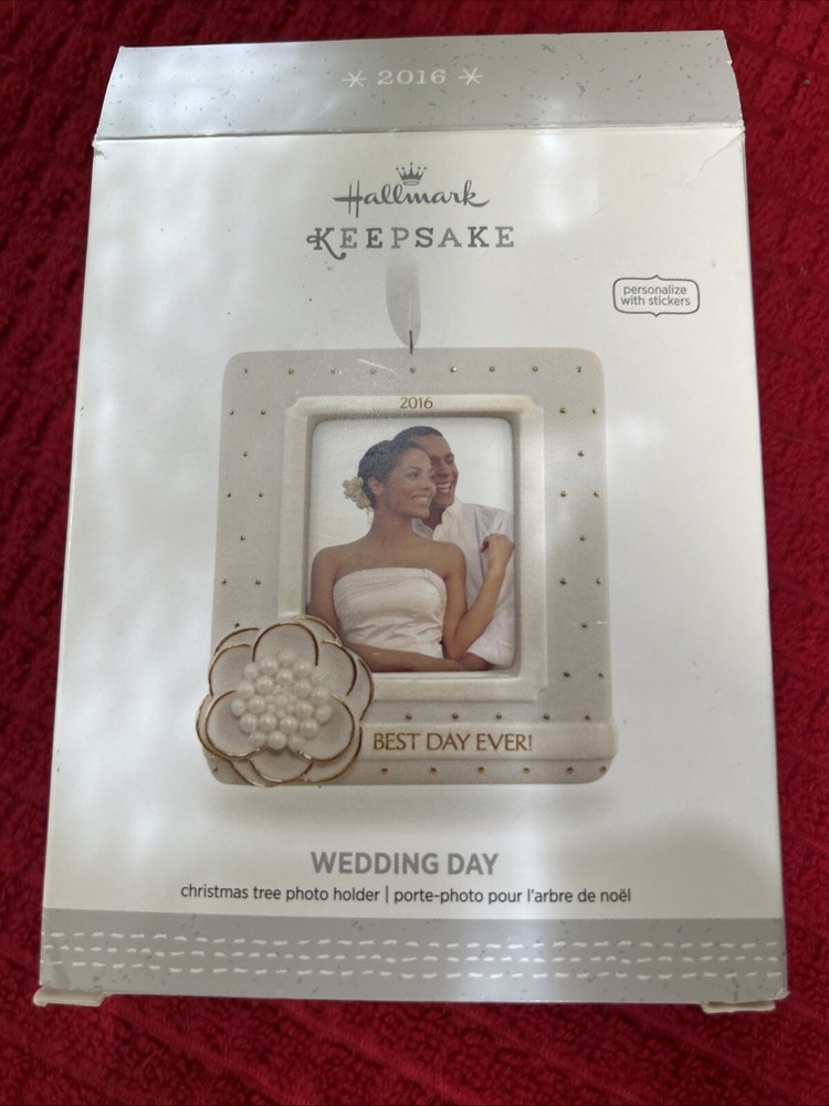 This Hallmark 2016 Porcelain Photo Holder/Ornament is the perfect addition to your collection. Celebrate the best day ever with this beautiful white square ornament featuring a lovely couple on their wedding day. Made of high-quality porcelain, this ornament will last for years to come and is perfect for displaying your favorite photos. The Hallmark 2016 Ornament is a great gift for your spouse or for yourself. This collectible ornament is over 18 years old and is part of the Holiday & Seasonal Ornaments collection. Whether you're looking for a unique Christmas ornament or a special gift for your wedding anniversary, this Hallmark 2016 Porcelain Photo Holder/Ornament is the perfect choice.