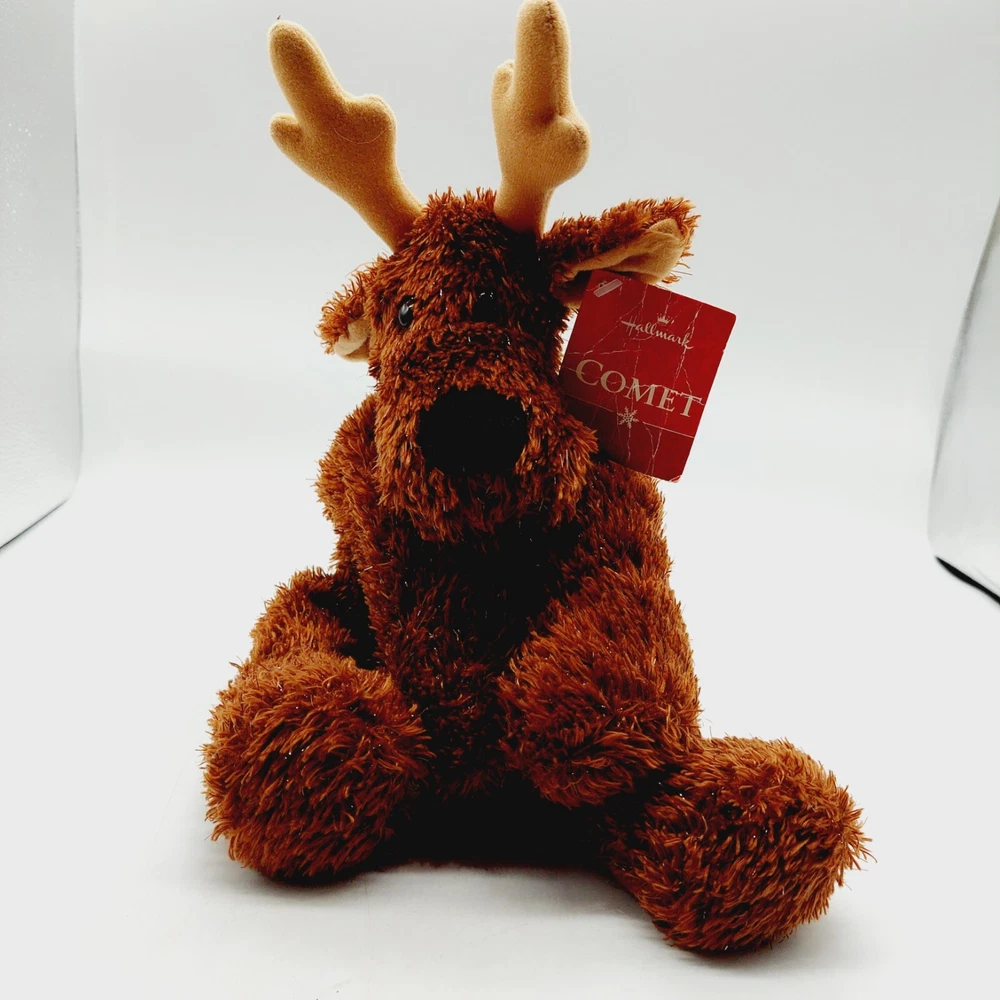 Hallmark Cards Plush Comet Reindeer Brown Sparkly Plush Stuffed 9”