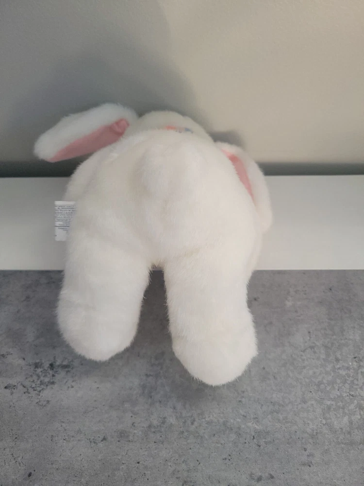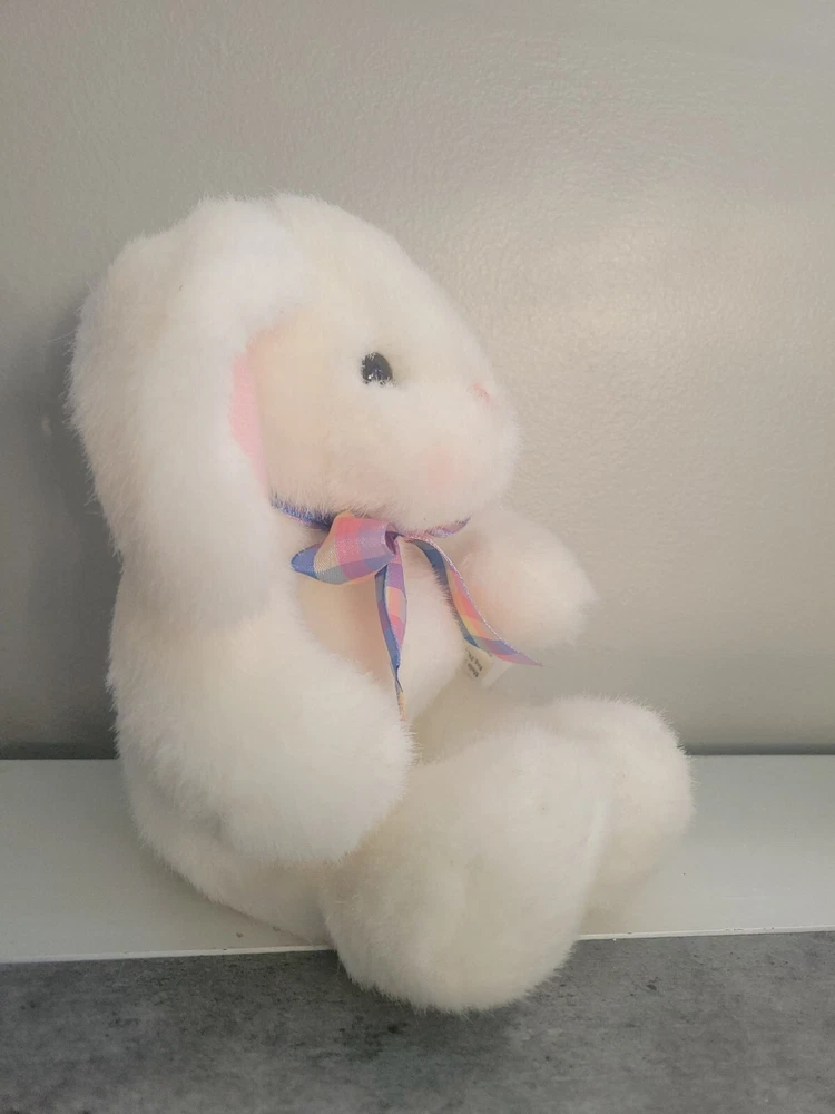 Hallmark Cards White Bunny Rabbit Plush W/Plaid Bow Stuffed Animal Toy Blushing Measures roughly 9 inchs and has been well cared for and gently loved from a pet free smoke free home