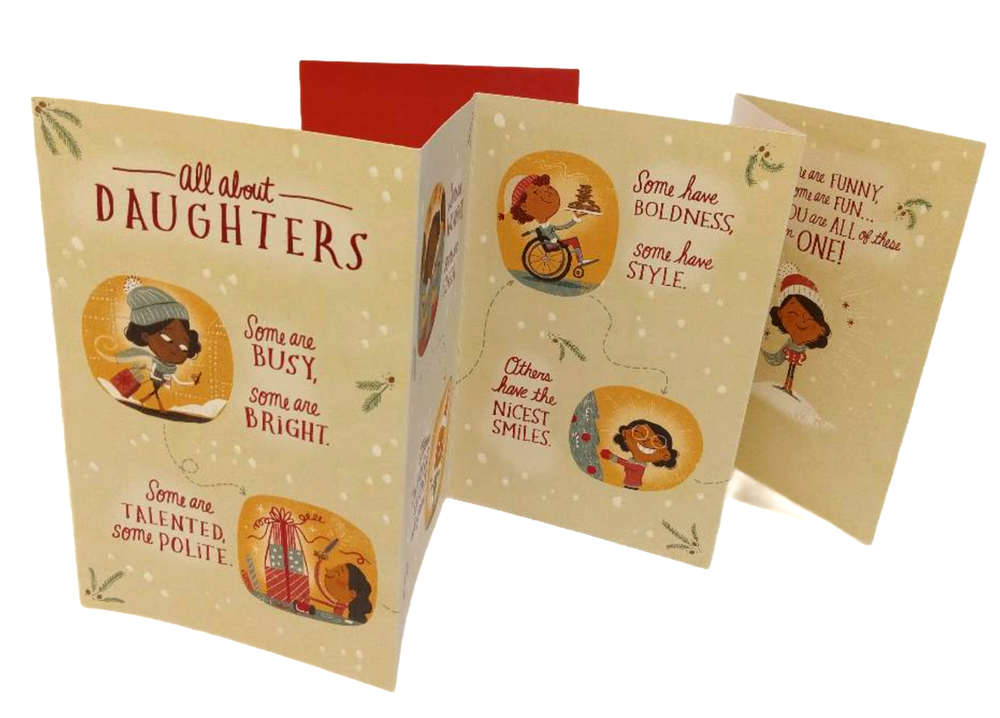 Hallmark Christmas Card Multi All About Daughters Some Are Busy Some Are Bright The Hallmark Christmas Card is a thoughtful and modern greeting card featuring a multicolor design with an all-over pattern. It is specifically tailored for daughters, with some being busy and others bright. The card includes an envelope for easy gifting during the Christmas season. Made in the United States by the trusted brand Hallmark, this folded card captures the holiday scene and is perfect for spreading Christmas cheer to loved ones. *** Item Descriptions *** Brand - Hallmark Condition - New Color - Multicolor Type - Greeting Christmas Card Theme - Christmas Holiday Scene Recipients To - Daughters UPC# - 795902502232