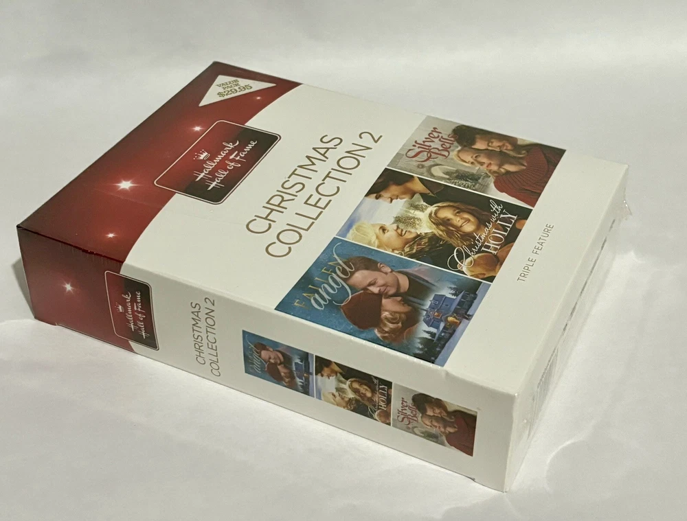 This 3 DVD set from Hallmark's Hall of Fame Christmas Collection features three popular holiday movies: Fallen Angel, Christmas with Holly, and Silver Bells. The DVDs are in NTSC video format and come in a tall/DVD case with an aspect ratio of 4:3. The movies are rated G and are suitable for children and families. The features include full screen and widescreen viewing options, and the language is American English. The DVDs have never been opened and are in their original packaging. This item is perfect for any Christmas movie lover or collector.