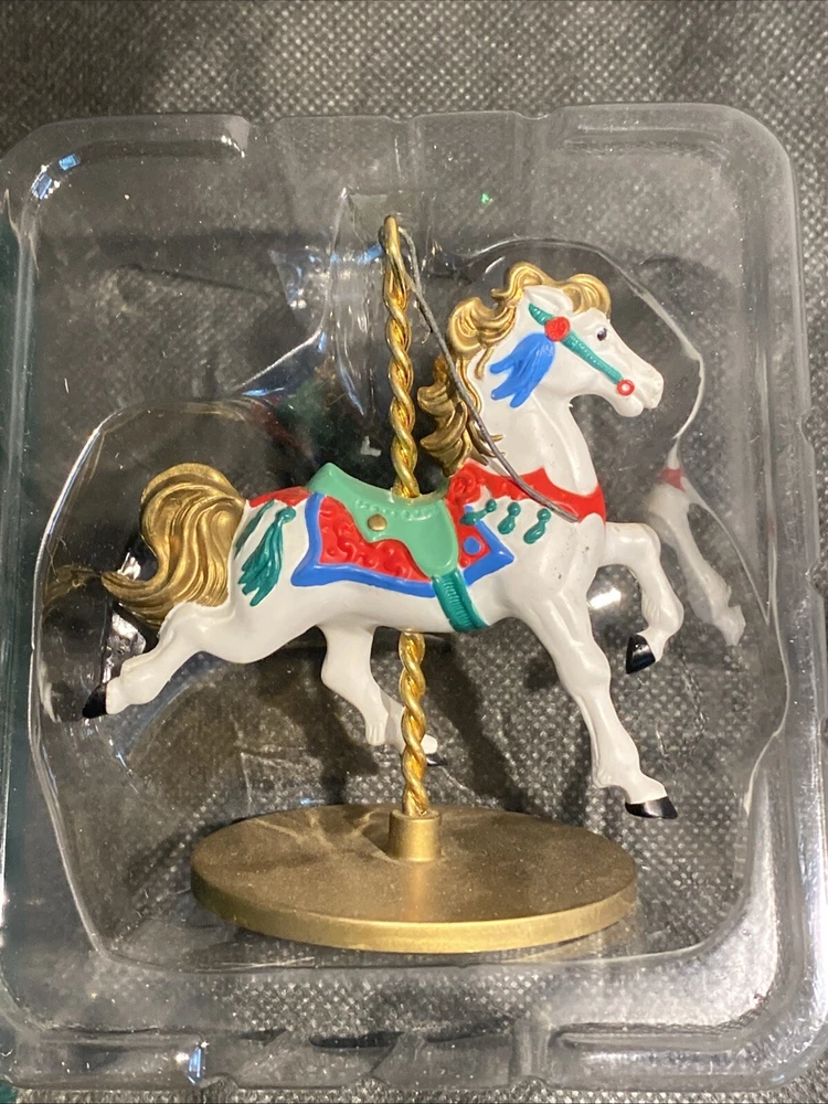 Type: Ornament Original/Licensed Reproduction: Original Pattern: Snow Collection: Ornaments Brand: Hallmark Theme: Christmas Carousel Horse Set Includes: Ornament Year Manufactured: 1989 Subject: Carousel Horse Shape: Horse