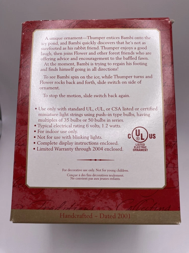 New in box. Nonsmoking home. Ornament only been removed from box for pictures. Magic feature has not been tested. It connects to a string of lights. I am assuming the Magic feature works, HOWEVER, keep in mind this is a 23 year old ornament. This ornament is being sold as is. There will be no returns or refunds. Please note this fact before purchasing. Thanks!