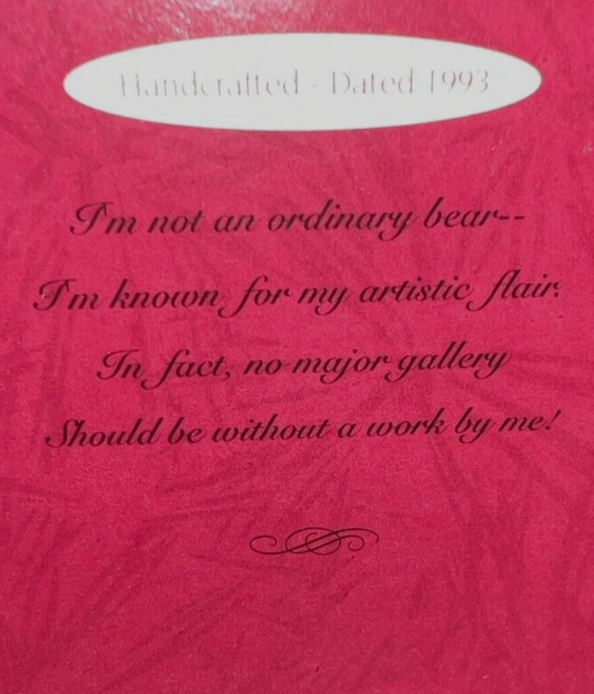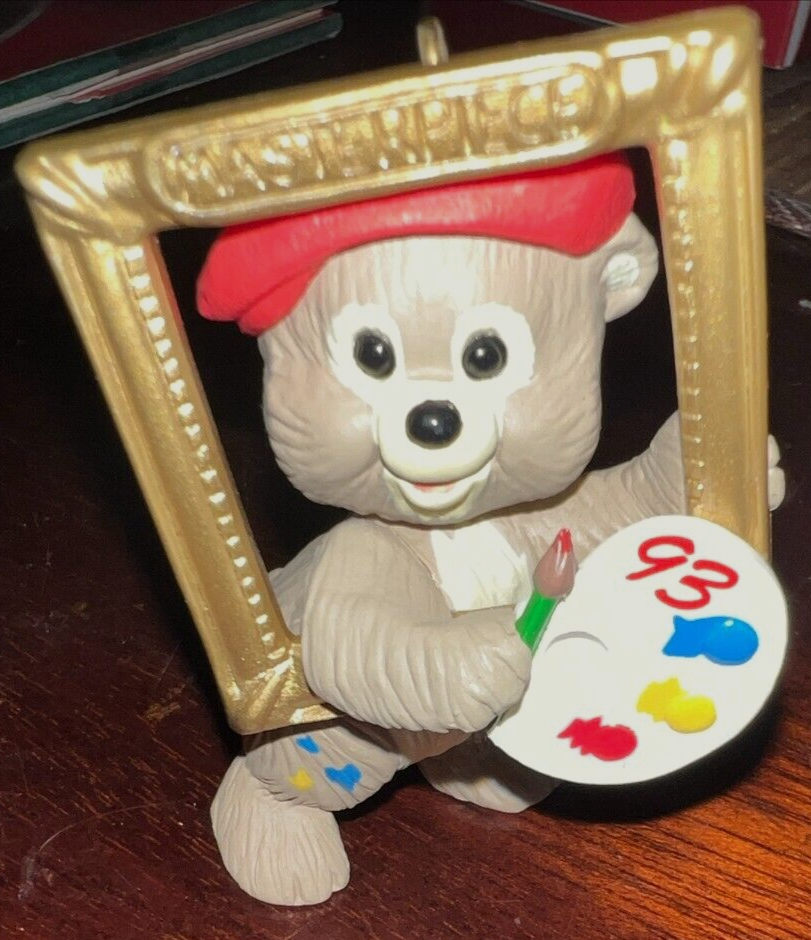 This "Hallmark Keepsake" Masterpiece '93 ornament is a perfect addition to your Christmas tree. The handcrafted design features a cute bear holding a picture frame, with intricate details that make it a unique and special ornament. It's a great choice for collectors or anyone looking to add a touch of whimsy to their holiday decor. The "Beary Gifted" Christmas ornament is part of the "Hallmark Keepsake" Christmas Ornaments collection and is perfect for any occasion. Whether you're looking for a gift for a loved one or just want to add some sparkle to your own home, this ornament is sure to delight. So why wait? Add this "Hallmark Keepsake" Masterpiece to your collection today!