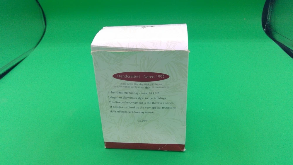 Add a touch of nostalgia to your Christmas tree with this original 1995 Hallmark Keepsake Ornament featuring Holiday Barbie. Measuring 3 3/8 inches in length, 3.5 inches in height, and 3 inches in width, this medium-sized ornament is made of plastic and fabric materials and features a hanging feature for easy placement. Perfect for collectors and Barbie enthusiasts alike, this vintage ornament is a must-have for any holiday occasion. The set includes one ornament with an irregular shape and an unknown country/region of manufacture. Get your hands on this original Hallmark ornament from the Barbie series and add it to your collection today!