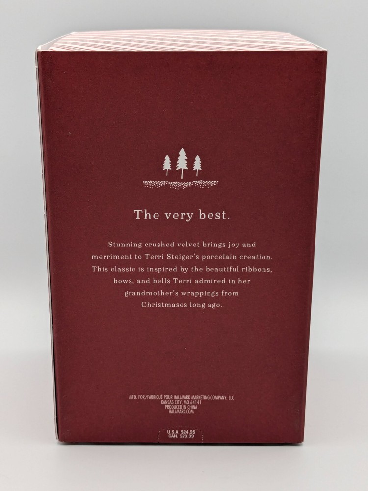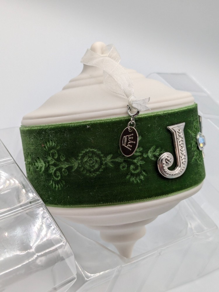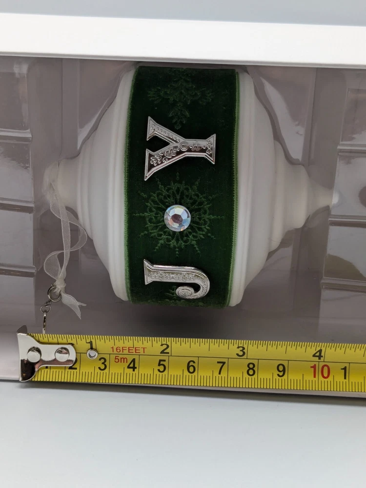 This Hallmark Keepsake Emerald Joy ornament from 2015 is crafted with porcelain and accented with velvet for a luxurious holiday touch. Pre-owned in excellent condition, it comes in its original box, which shows minor wear due to age. A timeless and elegant addition to your Christmas tree. We ship within one business day! This item comes from a smoke-free and dog-free home. Our items are carefully packed to guarantee their safe arrival to you. #hallmark #hallmarkornament #hallmarkkeepsake #hallmarkornaments #hallmarkkeepsakeornament #emeraldjoy #christmasornament #cbtreasures
