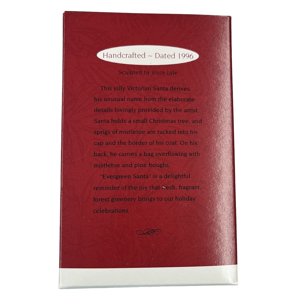 Own a Hallmark Keepsake Ornament Evergreen Santa Special Edition! It was sculpted by Joyce Lyle! It is handcrafted and dated 1996!