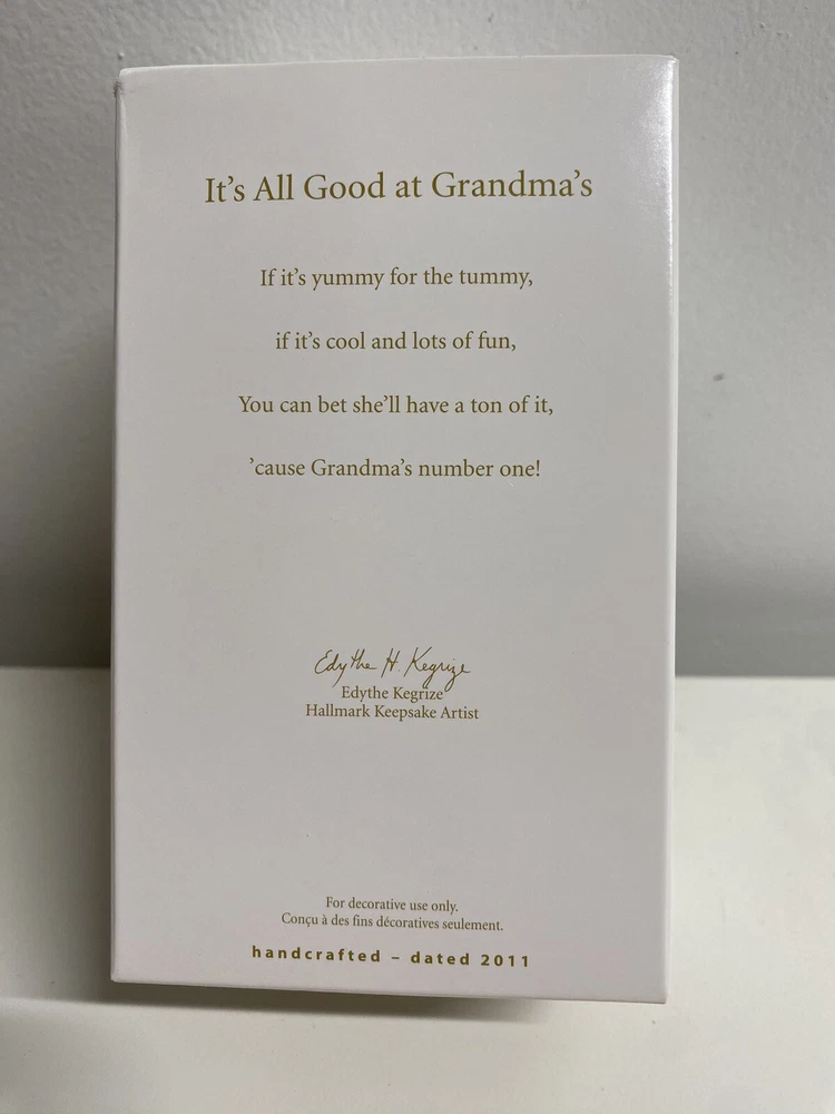 Theme: Grandma's Treat Jar, Christmas Personalize: No Set Includes: Ornament Character: Grandma's Candy Jar with Candy inside Subject: Love for Grandma, Treats, Christmas Memories, Christmas Size: Small Production Technique: Artist Crafted, Handcrafted, Production Run by SKU Material: Acrylic, Resin Vintage: Yes Pattern: All-Over Measurements: See Photos in Listing above for actual measurements with Ruler gtin13: 795902199371 Product Line: Hallmark Keepsake Ornaments Country/Region of Manufacture: China UPC: 795902199371 Origin: Ships from Tennessee Style: Arts and Crafts MPN: QXG4079 Features: Artist Designed, Attached Items, Decorative, Embellished, Etched, Hanging, Standing, Handcrafted by Artist Edythe Kegrize Shape: Candy Jar Year Manufactured: 2011 Time Period Manufactured: 2010-2019 Type: Ornament Color: Clear Acrylic Jar, Red, White Pink Green Candies inside Brand: Hallmark Collection: Hallmark Keepsake Ornaments Franchise: Hallmark Original/Licensed Reproduction: Licensed Reproduction Production Style: Artist Handcrafted, Production Run Occasion: Grandma's Love, Christmas Antique: No Artist: Edythe Kegrize Recipient: Anyone, Grandchild, Grandma, Christmas