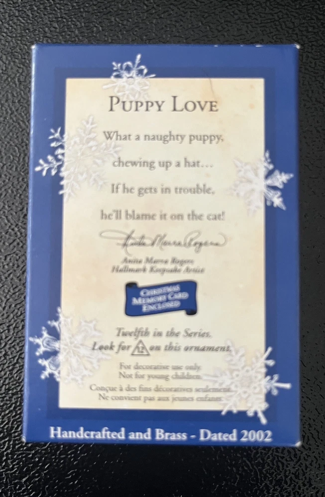 This Hallmark Keepsake Ornament from the 2002 Puppy Love Series is a perfect addition to your Christmas decor. The ornament features a cute and artistically designed puppy. It is a great collectible item for those who love antique or vintage pieces, and is a must-have for any Hallmark ornament enthusiast. The ornament is manufactured in China and is part of the Ornaments collection, with a set of one item.