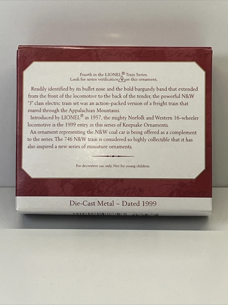 Hallmark Keepsake Ornament 746 Norfolk and Western Steam Locomotive Lionel 1999