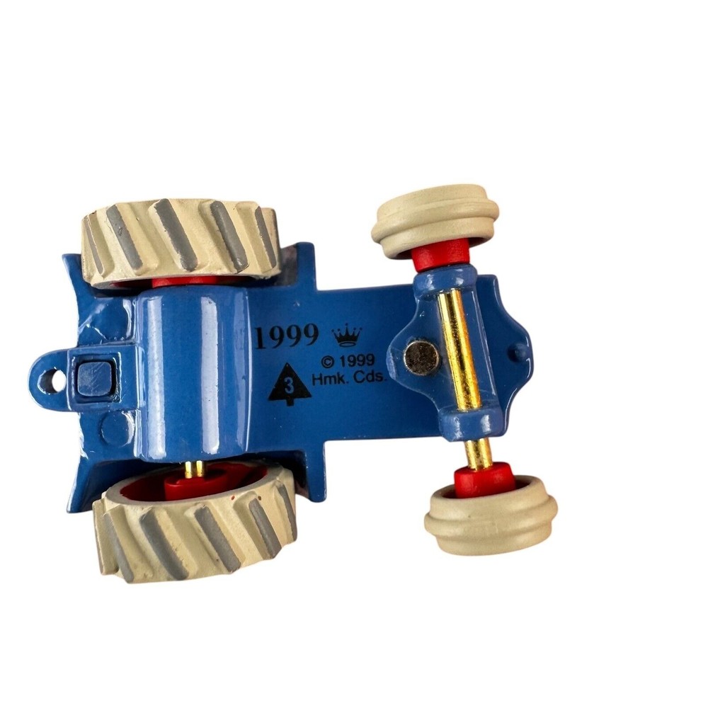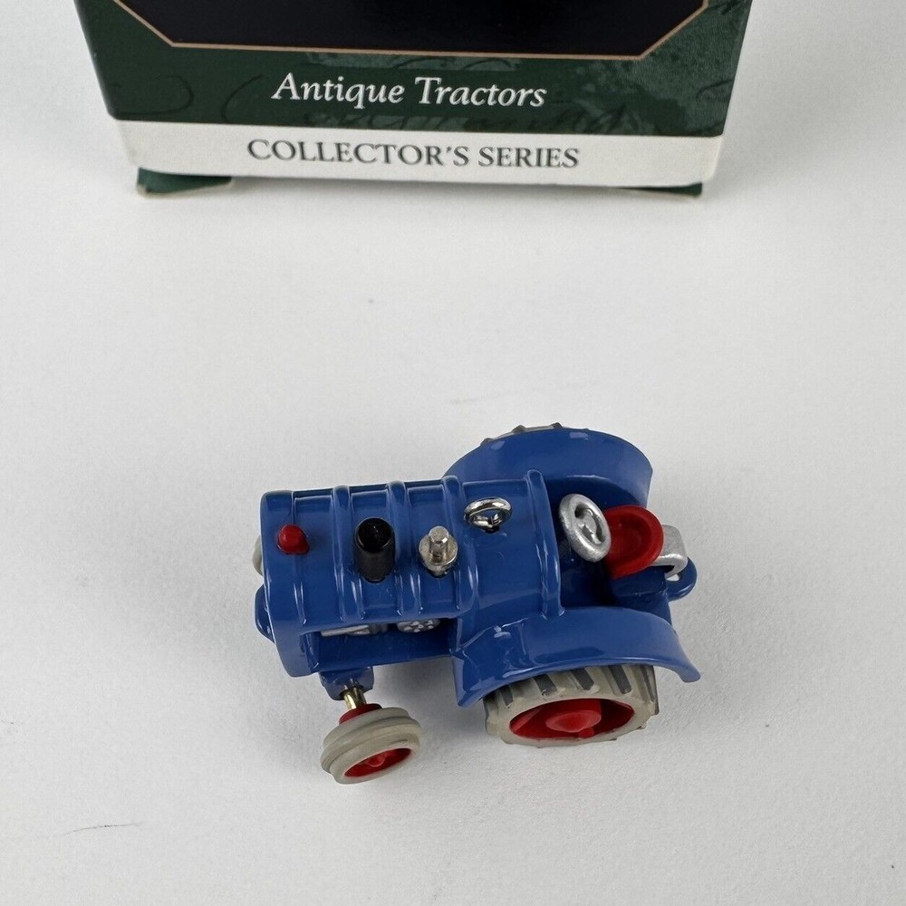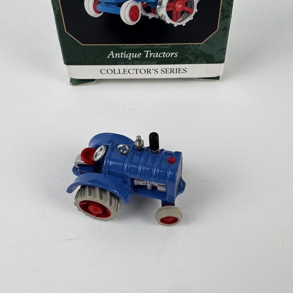 Vintage 1999 Hallmark Keepsake Ornament Blue Die-Cast Metal Miniature Tractor Third in The Antique Tractors Collectors Series MRP# QXM4567 Approximate Size: Length: 2-1/4" x Width: 2" Preowned. Ornament is in mint condition. Box is not like new but very good. Any collector card that was originally included is not included. See photos as part of description. This is what you will receive.