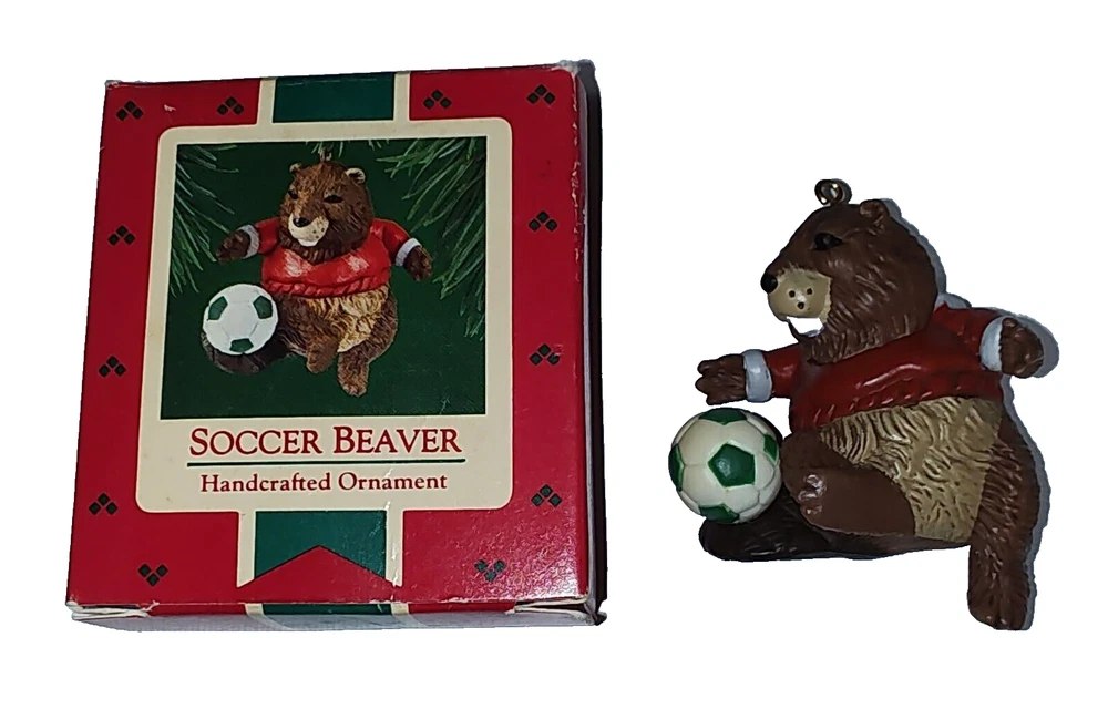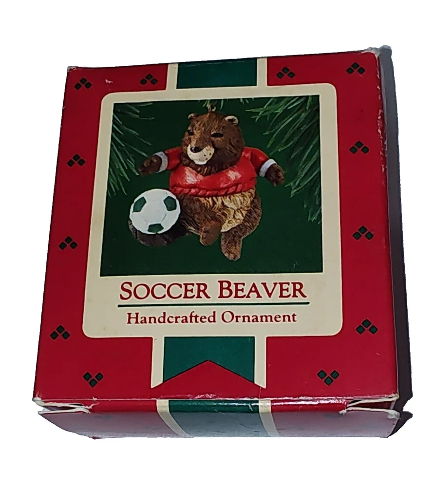 Hallmark Keepsake Ornament Soccer Beaver Vtg 1985 Red Jacket Soccer Ball The original box shows some age. SEE PHOTO