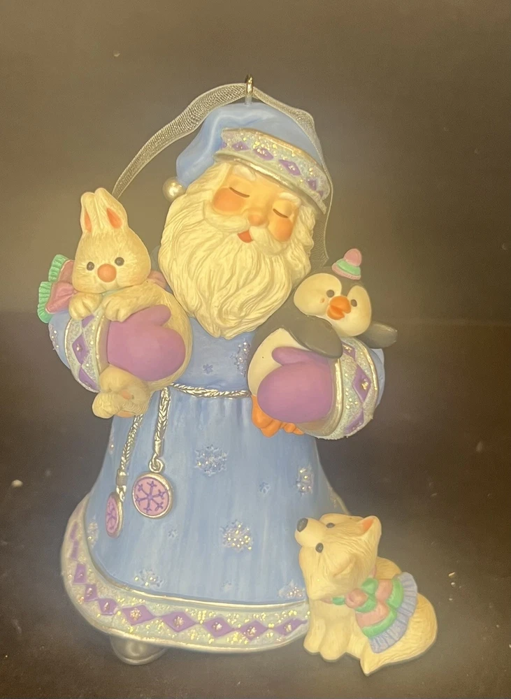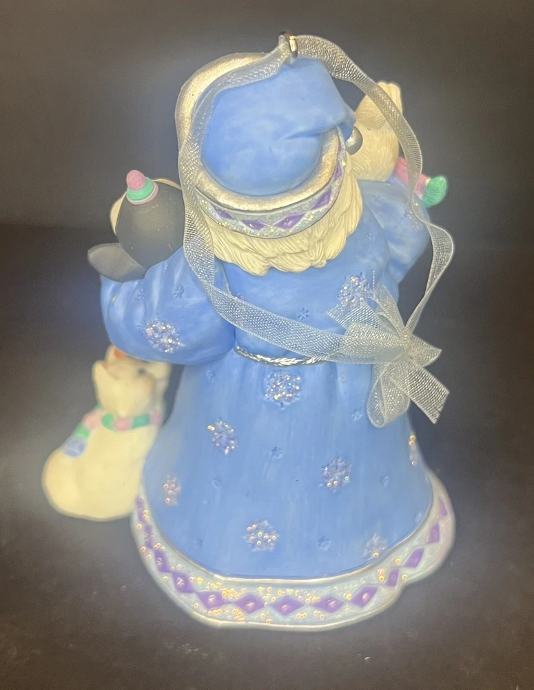 The Hallmark Keepsake Ornament Woodland Friends 2002 features a medium-sized Santa Claus ornament with a multicolor design, part of the Animals collection. It depicts Santa surrounded by various animals, making it a festive addition to any Christmas decor. This vintage ornament from 2002 is made of mixed materials with decorative hanging features, perfect for adding a touch of holiday charm to your home.