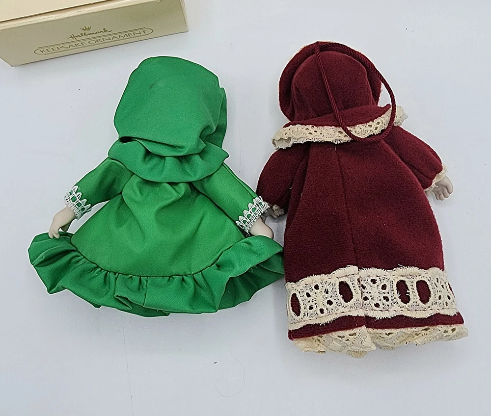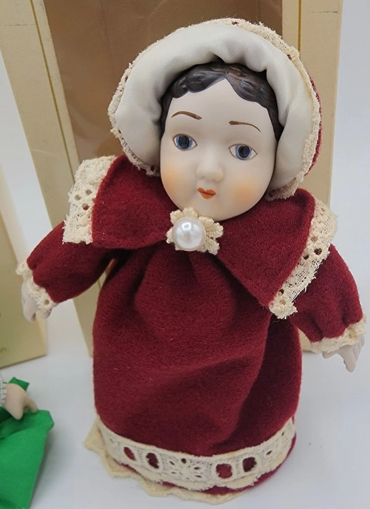 Some say Beautiful .. some may say Creepy Christmas ๐ or / and Halloween ๐ Original boxes although Amanda's box does have the front slipping Amanda also had a small mark on the back of her hood (pictured and marked) and Diana has a bit of discoloration on her lace but nothing to take away from the integrity or "beauty" of the pieces ๐๐Memories Remembered with Yours to be Made...๐๐ Please see the pictures for detailed descriptions and feel free to message with any questions! ***Actual color may vary slightly based on screen , lighting, & camera We DO consider any reasonable offers if you feel our price is not quite what you would like to pay.. We try to stay competitive but know sometimes an offer is best for business!!!!! : ) Each of our pieces holds many memories and are waiting to continue making new memories with you... with memories comes history marks, but we try to disclose every "memory" mark! We stand by all our items and try to list every blemish or imperfection we see , but sometimes we miss things.. if you have any concerns, please message us and we will do our best to come to a quick resolution! We are dedicated to 100% YOU satisfaction with your item(s)!!!! SHIPPING: We ship USPS. With the new delays with USPS, we will get your item shipped ASAP! We do combine shipping and will invoice you with a new total. We keep track of every item from our doorstep to yours and will communicate asap if we see no movement / scan from the Post Office. We try to stay fair with shipping costs. If there is an overage of 3.00 dollars or more, we do provide a shipping refund of cost! Thank you for "shopping by" Littleshopofminnesconi โค๏ธ