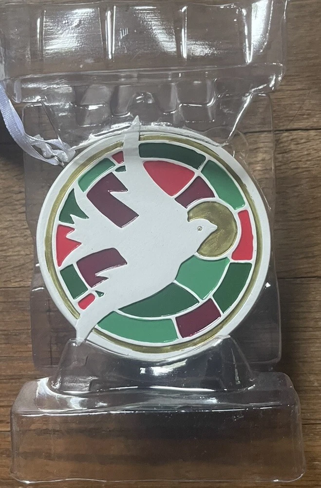 Add a touch of elegance to your Christmas tree with this beautiful Hallmark Keppsake Ornament. The round ornament features a stunning multicolor design, crafted from high-quality stained glass, and showcases a dove holding an olive branch. This timeless piece is perfect for collectors and will become a cherished addition to your ornament collection. Produced in China and manufactured in 2022, this ornament is part of the Ornaments collection and is perfect for the Christmas occasion. The vintage-inspired design and production style of the ornament make it a unique and special addition to your decor. With the set including one ornament, this is an excellent opportunity to start or expand your collection. New open box