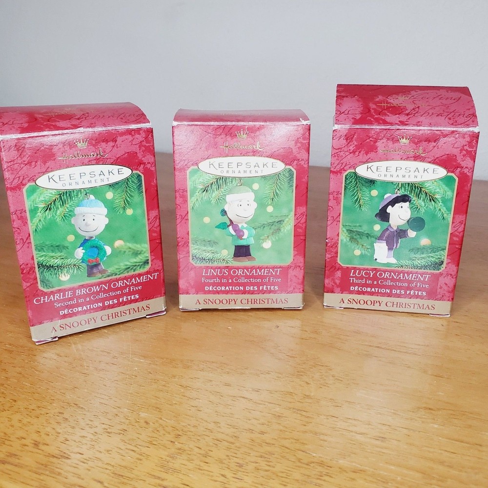 Hallmark Keepsake Peanuts Charlie Brown Linus Lucy Christmas Tree Ornaments x3 In excellent gently used condition! (SEE PICS AS PART OF MY DESCRIPTION) *christmas decor *holiday hanging ornaments