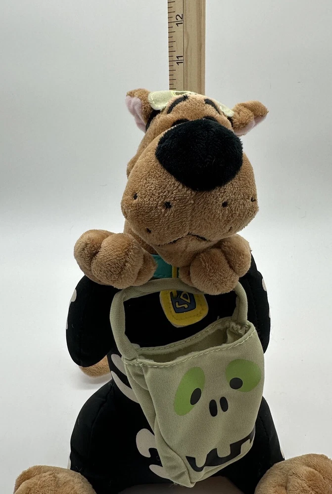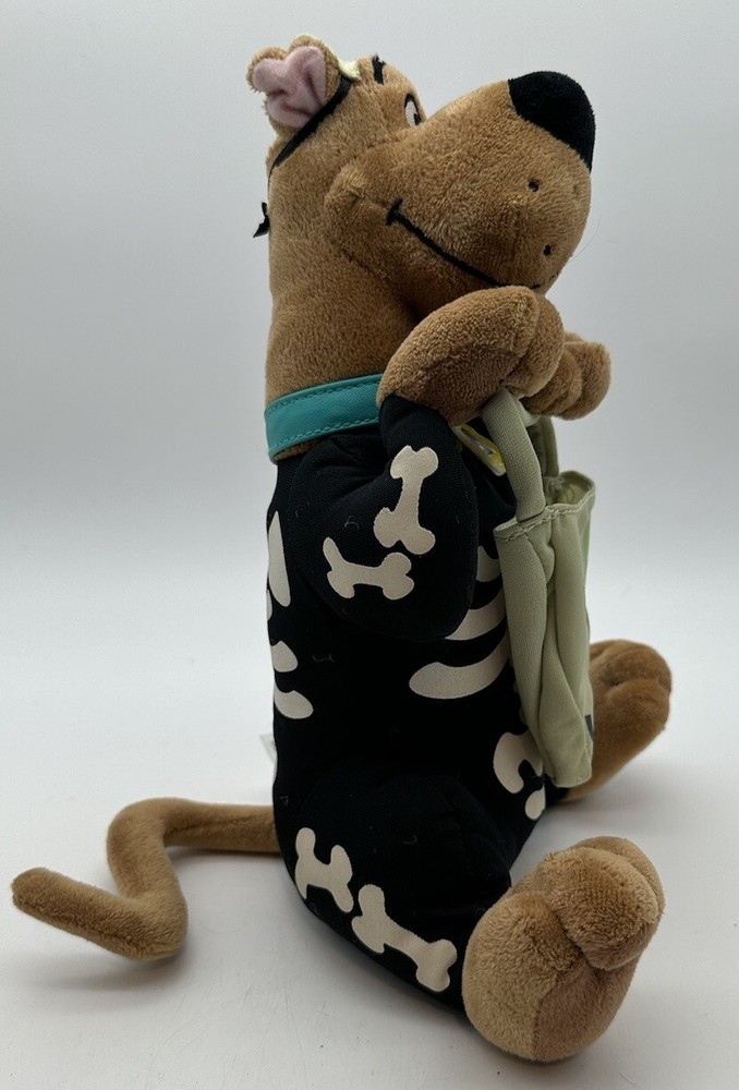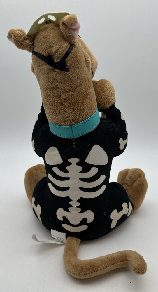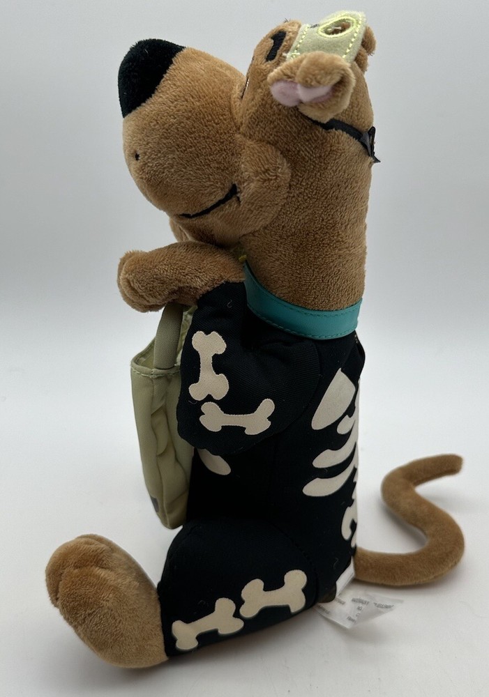 This Hallmark Scooby Doo Boo plush toy is perfect for Halloween and features a vibrating skeleton. The talking feature adds even more fun to playtime, making it a great addition to any Scooby-Doo fan's collection. With its small size, this plush toy is easy to carry around and would make a great gift for any occasion. Made by Hanna-Barbera, this toy is sure to delight both kids and adults alike.