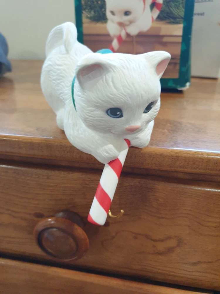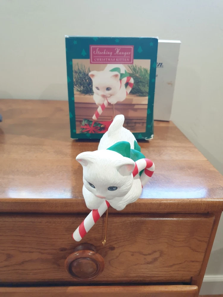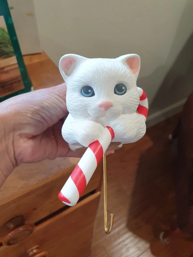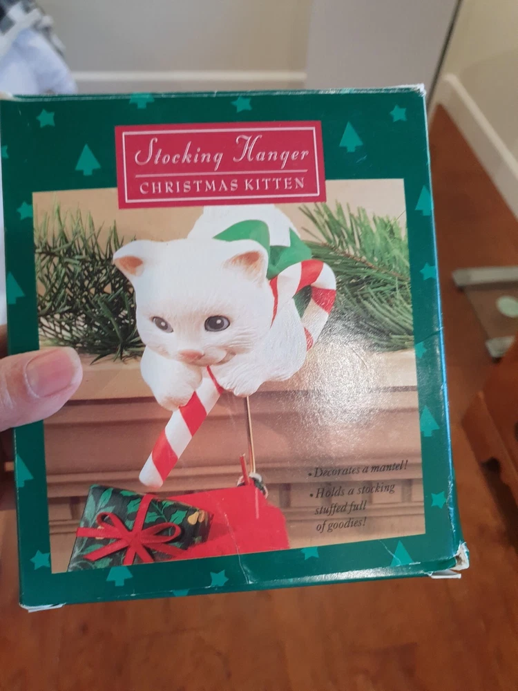 Stocking Hanger Christmas Kitten it is in good condition even has been used no wear on the cat just the old box Please see the photos for condition and measurements