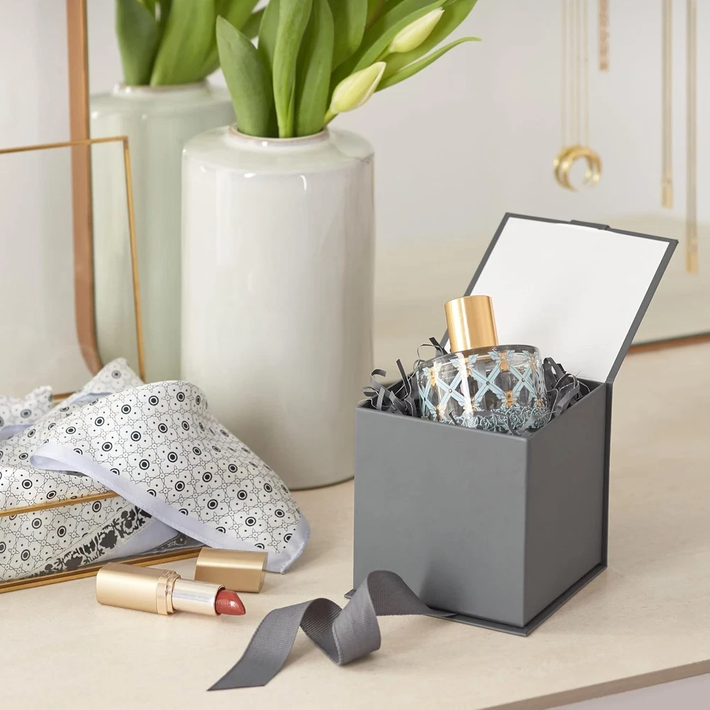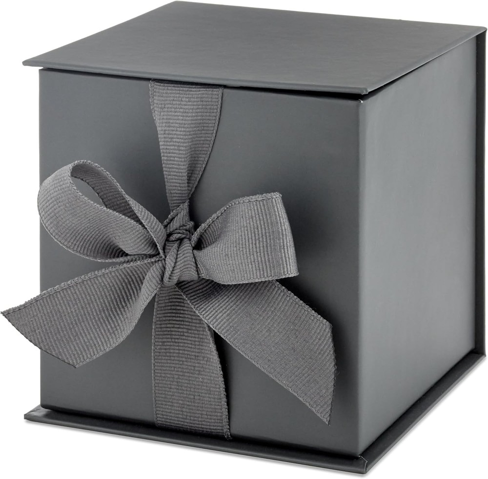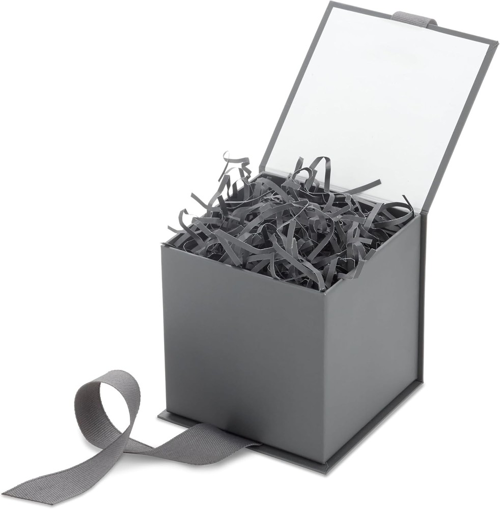 Hallmark Small Gift Box with Bow and Shredded Paper Fill (Gray 4 inch Gift Box)