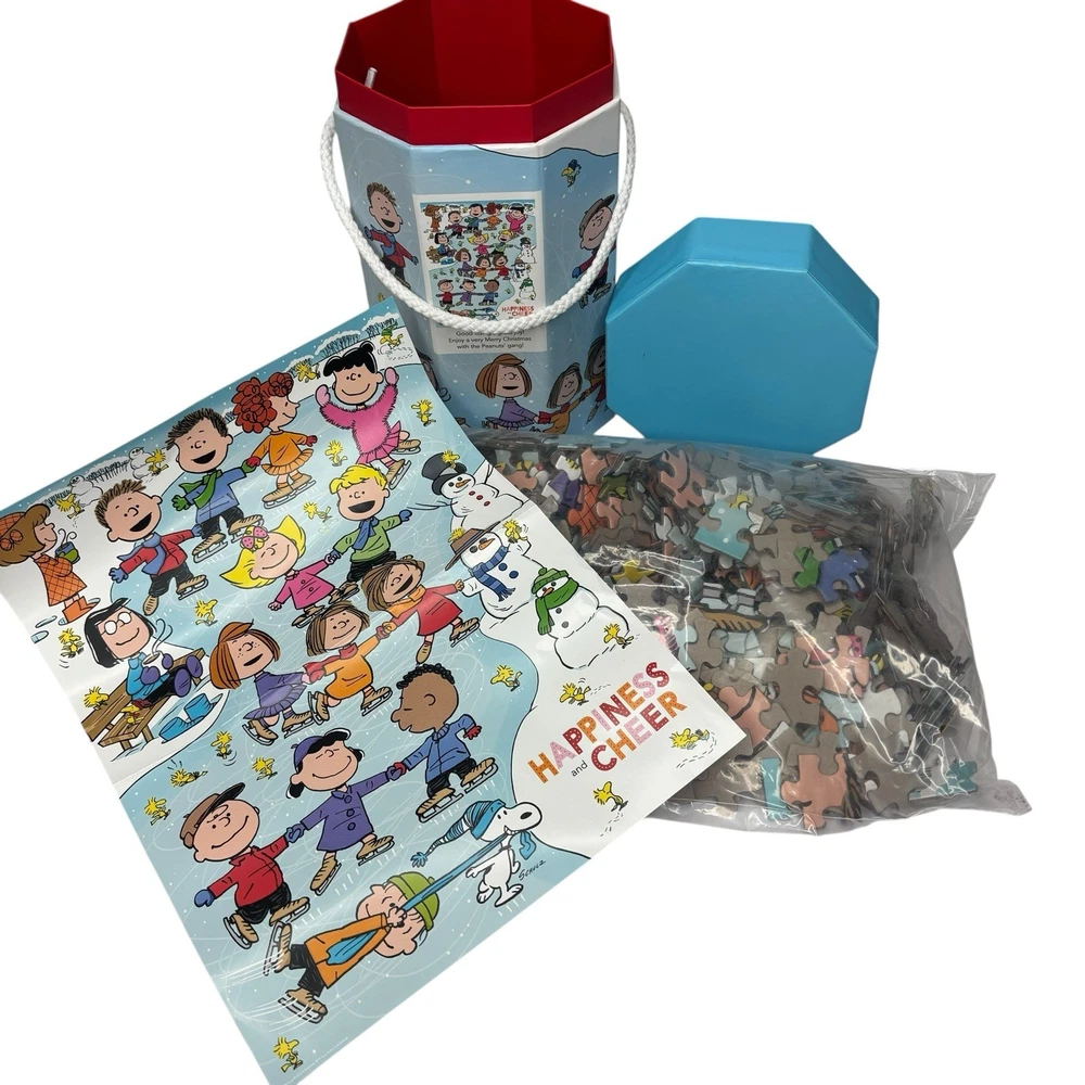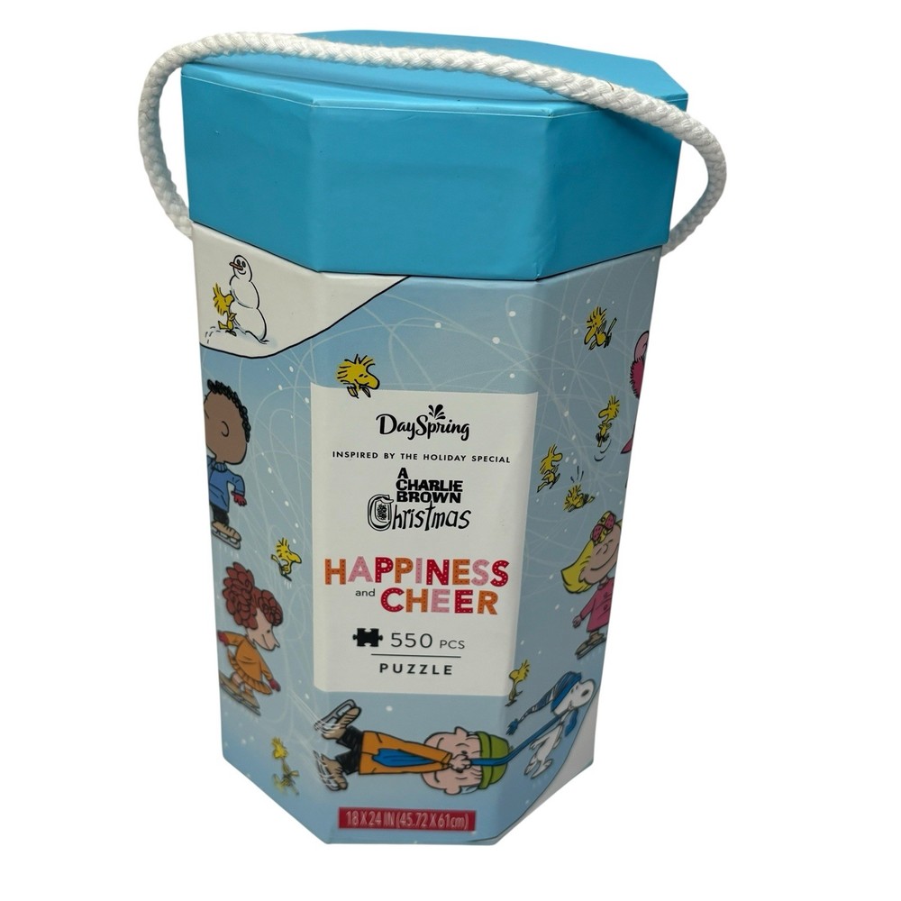 Description Condition New Sealed Hallmark + Peanuts Snoopy & the Gang Happiness is a Good Friend No Flaws MSRP $30 Includes reusable storage container Bring nostalgic Christmas cheer and hours of family fun with this Peanuts Happiness and Cheer 550 Piece Puzzle - a wonderful reminder of the joy that the Christmas season brings. Featuring fun artwork with all of your favorite Peanuts characters ice-skating together and an inspirational message of "happiness and cheer", this Christmas puzzle is sure to bring joy and lots of family fun as you work on it together during the holidays! Makes a thoughtful birthday or Christmas gift for both Peanuts and puzzle lovers in your life. Product Specifications: Dimensions: 18” x 24” when finished Material: paperboard Pieces: 550 Comes in giftable box with 8” x 10” poster print of puzzle design Product by DaySpring Dive into the world of Peanuts with this vibrant puzzle and game set, featuring iconic characters in striking red and blue hues. Perfect for fans of all ages, this set offers endless entertainment and comes in a convenient container for easy storage. Clean Non Smoking Home No Pets Loft250521