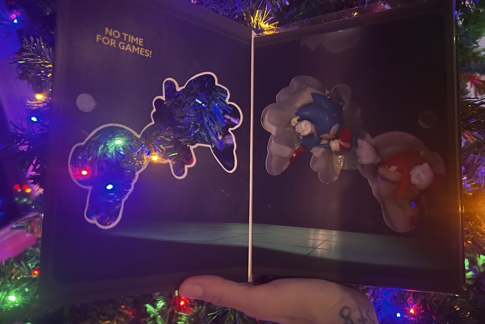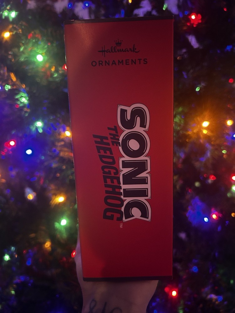 The Hallmark Sonic the Hedgehog & Knuckles Christmas Ornament Set of 2 features two irregularly shaped ornaments depicting the beloved characters from the Sonic the Hedgehog
