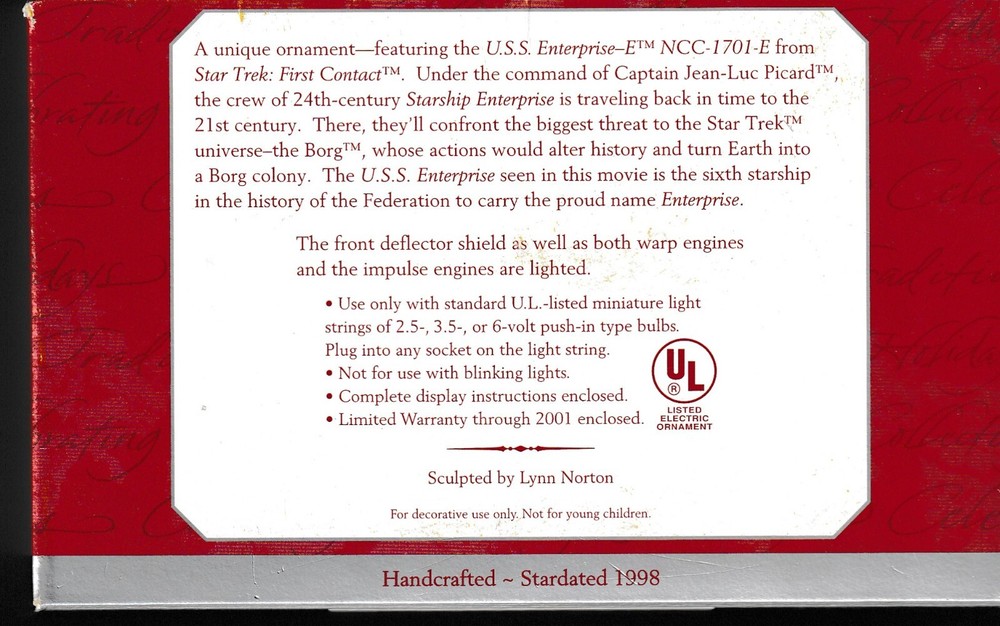 Hallmark -- Star Trek USS ENTERPRISE-E ~ 1998 Christmas tree ornament