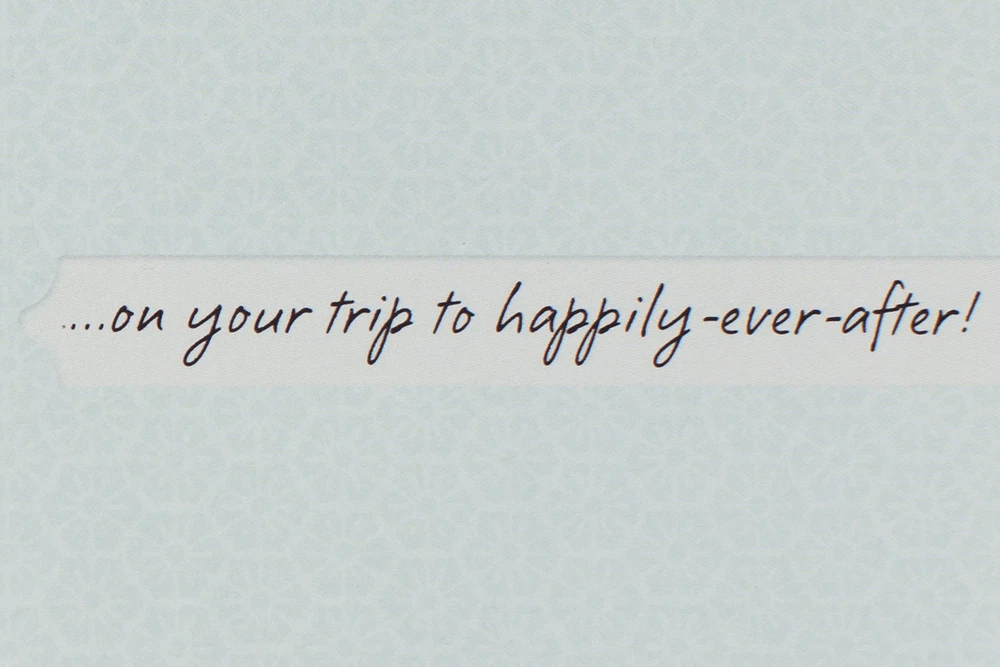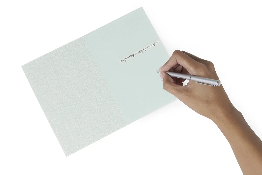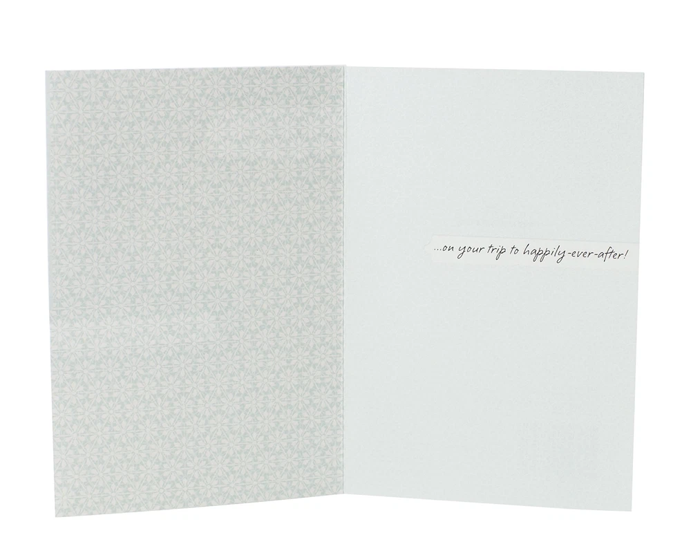 Share your best wishes to newlyweds in your life with this card designed with a newlyweds' car with cans driving away on light blue background with a background of white stars. The message on the front of the card reads, "Wishing you joy as you walk down the aisle…." Open the card to reveal the inside message, "...and love as you journey through life." The card measures 7.2 inches long by 5 inches wide made with high quality cardstock paper; an envelope is included. All Hallmark cards are made with paper from well-managed forests. Hallmark was founded in 1910 when 18-year-old J.C. Hall arrived in Kansas City, Missouri, with a couple of shoeboxes of postcards under his arm and the American dream in his heart. Today, more than a century later, Hallmark greeting cards are sold online and in nearly 40,000 retail stores across the globe and people continue to recognize the iconic Hallmark brand as "the very best." Front message: Wishing you joy as you walk down the aisle… Inside message: ...and love as you journey through life. Printed on high quality paper stock, this wedding card sends your love and congrats to a special couple. Card size: 5 inches wide and 7.2 inches long. All Hallmark cards are made with paper from well-managed forests.